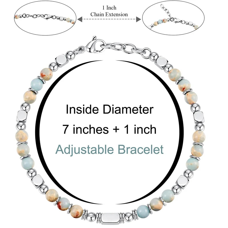 【 Material 】🌟 Nuestras pulseras para mujer están adornadas con piedra natural y cuentas de acero inoxidable, libres de níquel y plomo, no irritantes, de baja densidad y ligeras. Evocan una sensación de empoderamiento y elegancia, convirtiéndolas en un accesorio imprescindible para la mujer que marca tendencia hoy en día.
