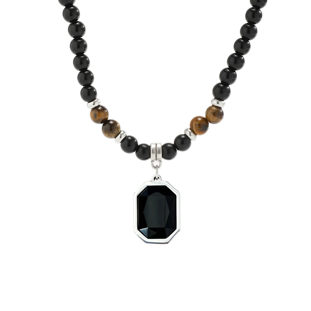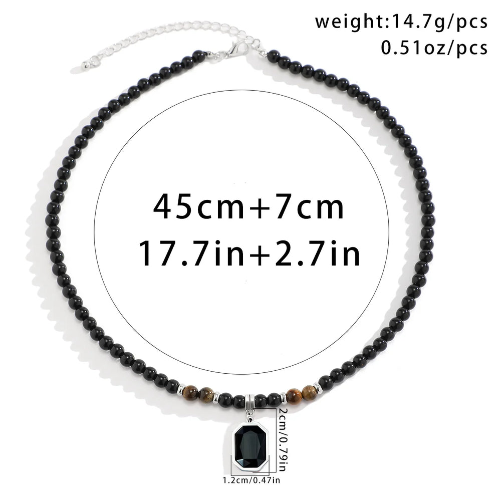 Número de modelo: Collar con colgante cuadrado de cuentas negras para hombre