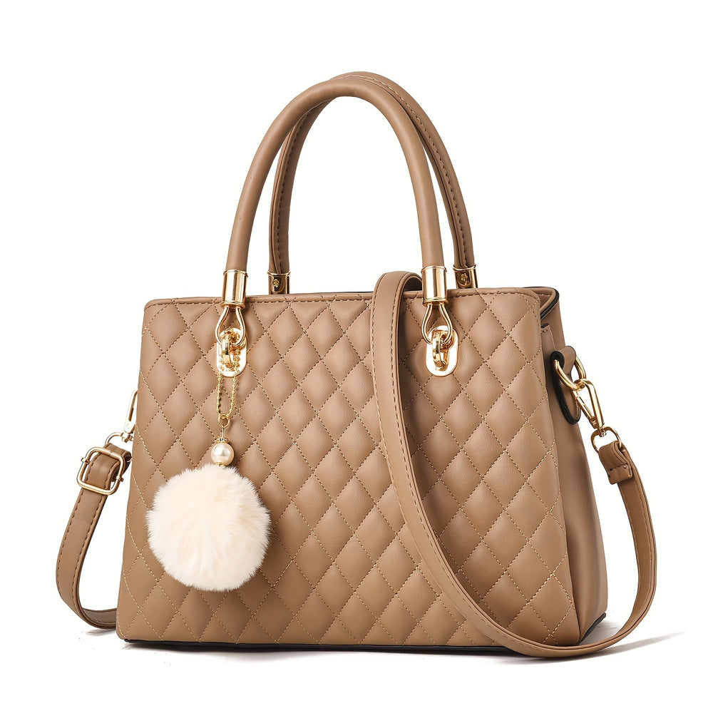 Made from premium genuine leather, this top-handle tote promises not only luxury but lasting quality. The supple leather delivers a soft touch and natural sheen, complemented by a charming pompon that adds a playful yet elegant finishing touch.