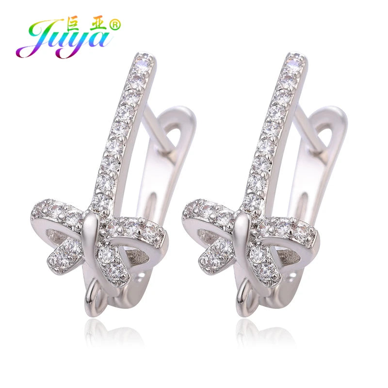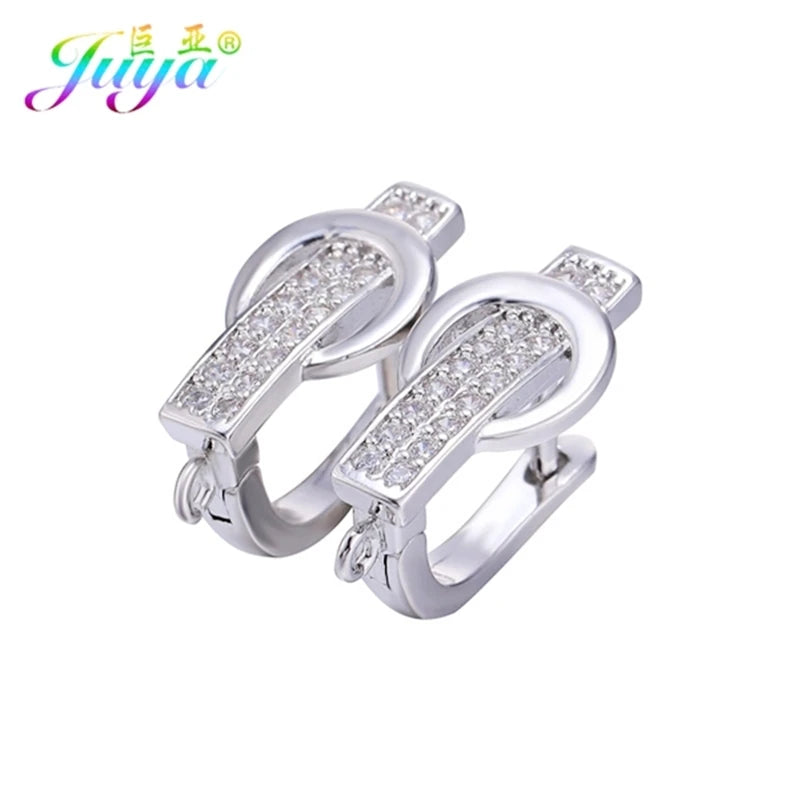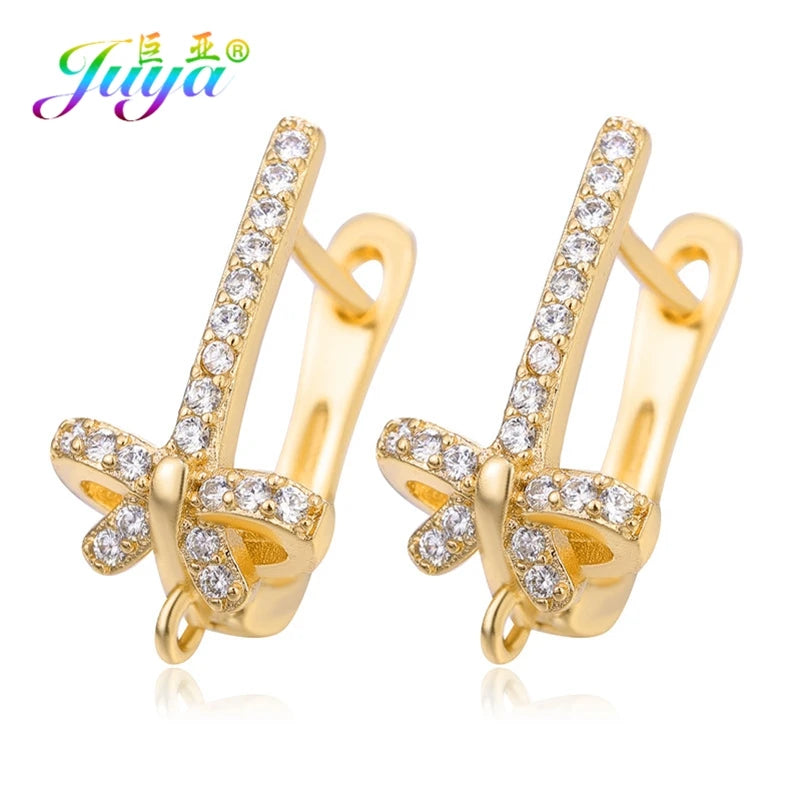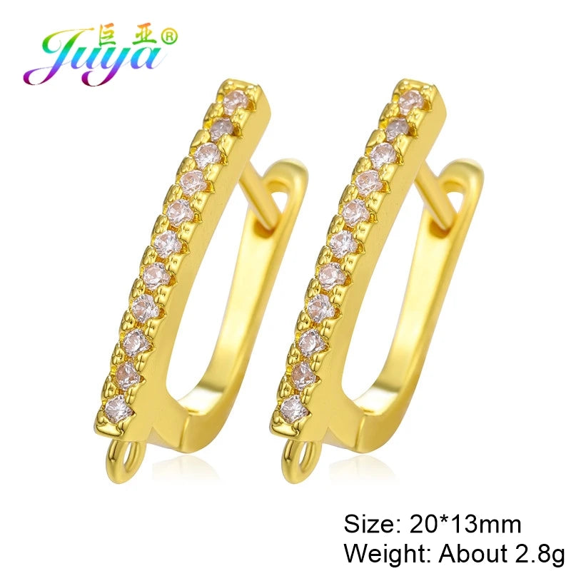 Material de joyería fina Juya DIY, suministros hechos a mano, ganchos para pendientes de color dorado/plateado, accesorios para hacer pendientes de lujo