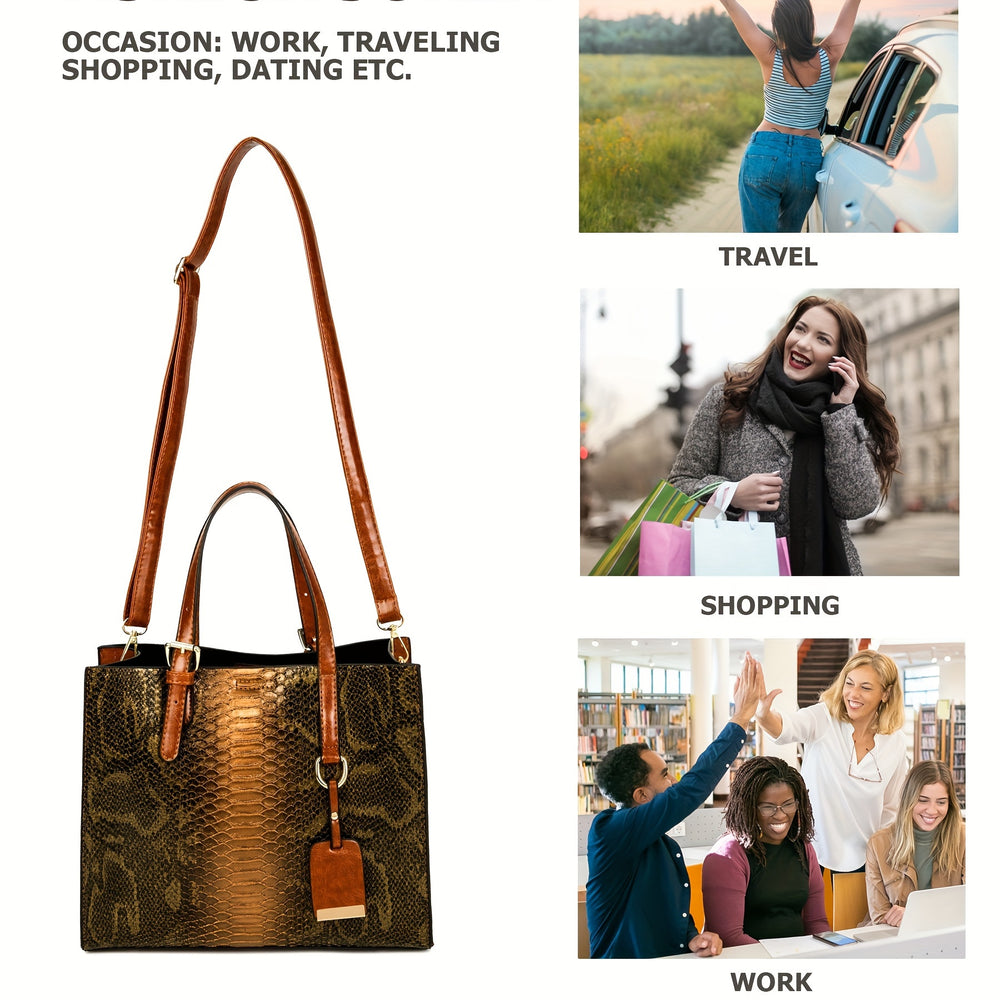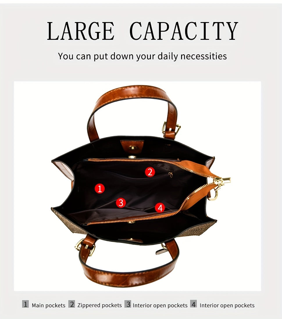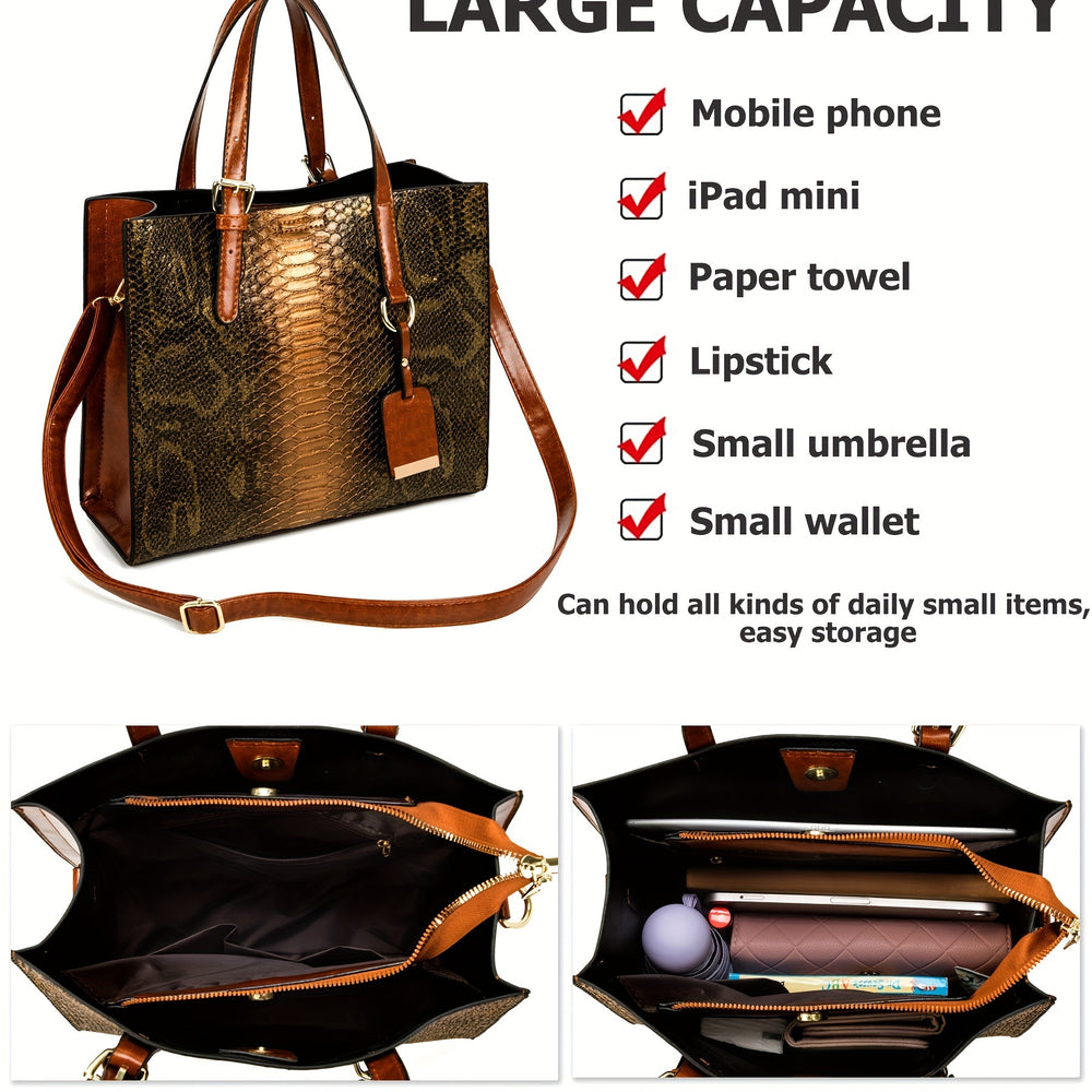 Experience unmatched exclusivity with the Stylish 3-Piece Set - Faux Leather Crocodile Pattern Handbags - Vintage Design Tote With Matching Clutch & Wallet Crossbody Bag. This carefully curated collection is designed for those who appreciate the perfect blend of timeless elegance and modern sophistication.