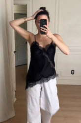 Blusas elegantes para mujer, top tipo camiseta sin mangas, top tipo tubo de satén de seda, camisola lisa con tirantes, blusa sin mangas, blusa francesa con encaje delicado