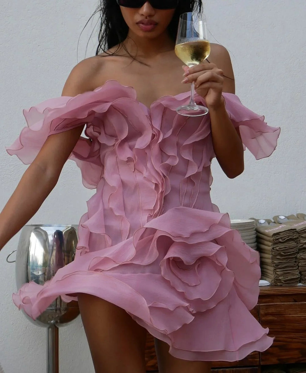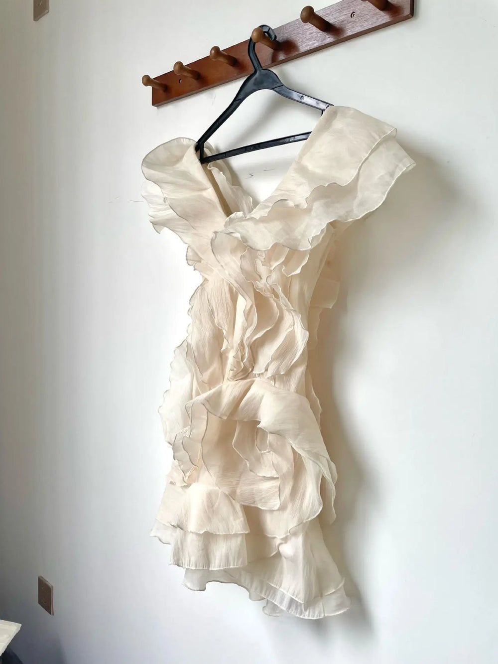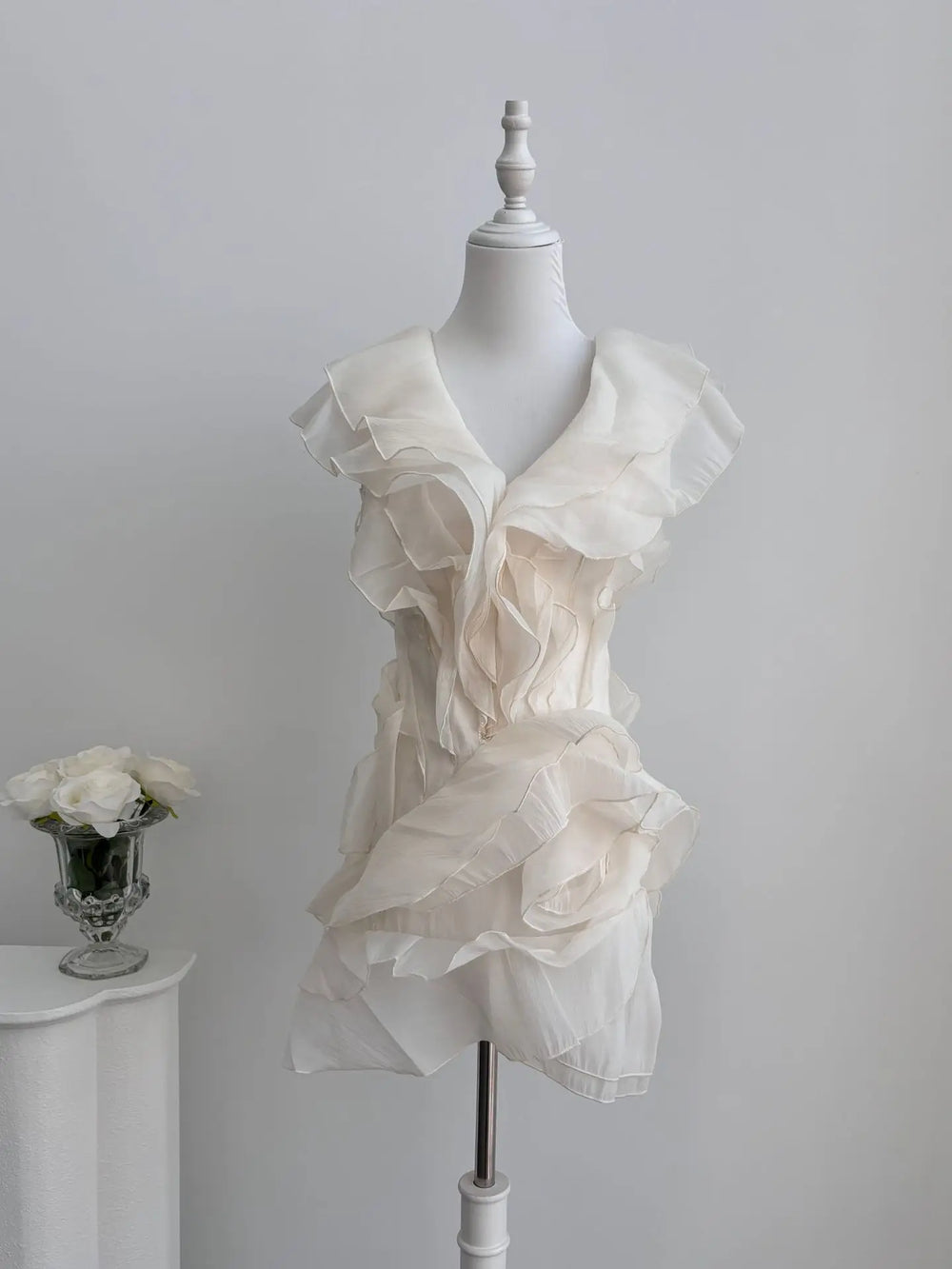Elevate your wardrobe with the 2025 New Ruffle Dress Niche Design Flowers Gentle Sweet Short Skirt Irregular About, and embrace the beauty and freshness of spring wherever you go.