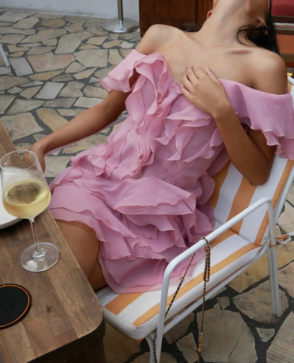 Meticulously crafted with attention to detail, this dress reflects expert craftsmanship that highlights both quality and style. The delicate ruffle accents perfectly enhance the feminine silhouette, showcasing the artistry behind every stitch. This dress is more than just clothing—it’s a statement of sophisticated design and thoughtful construction.