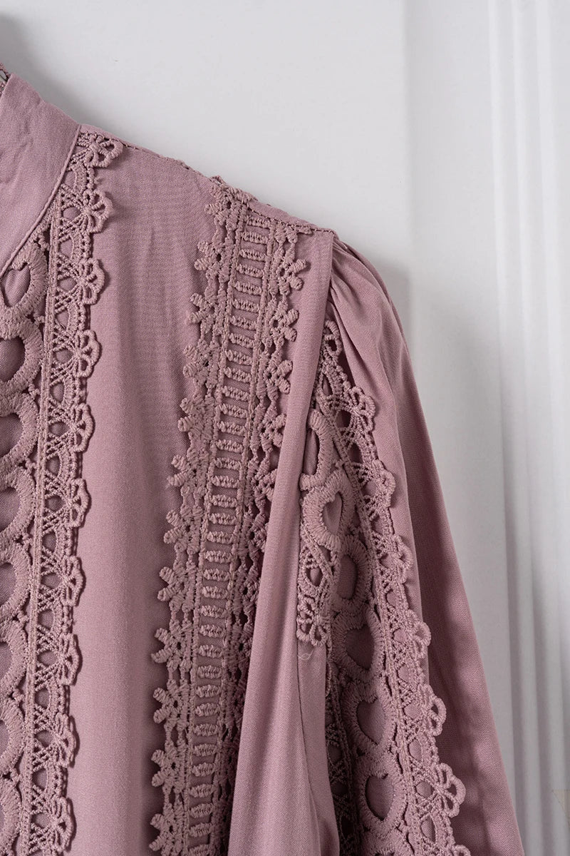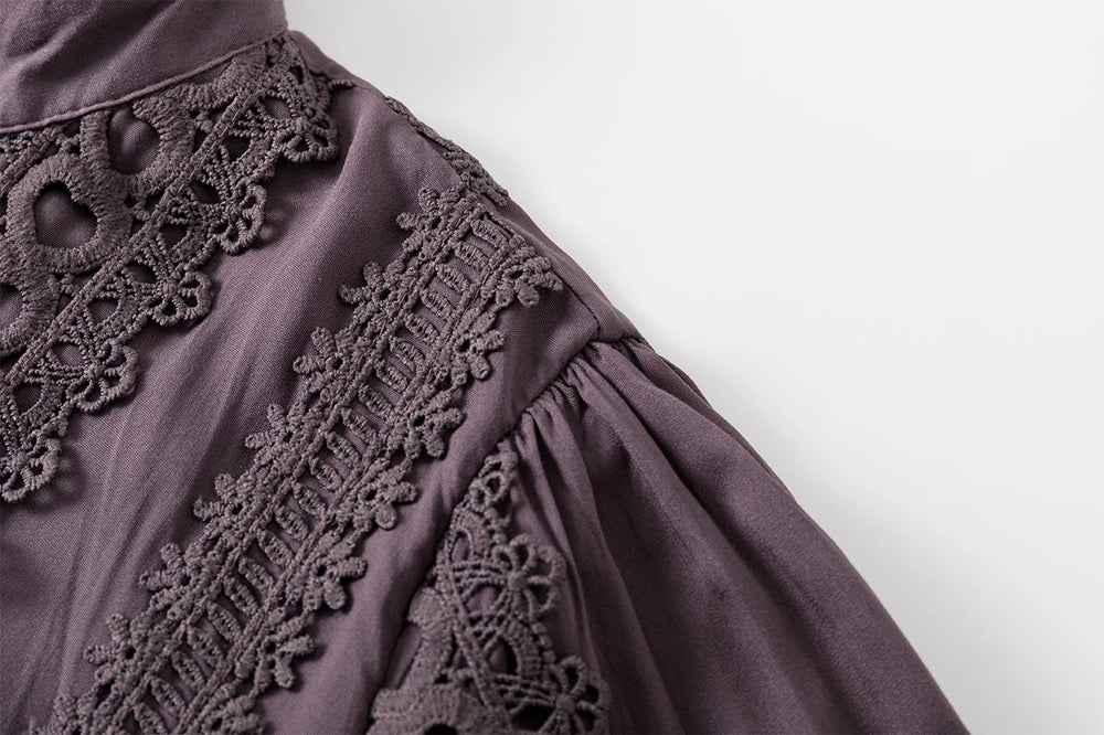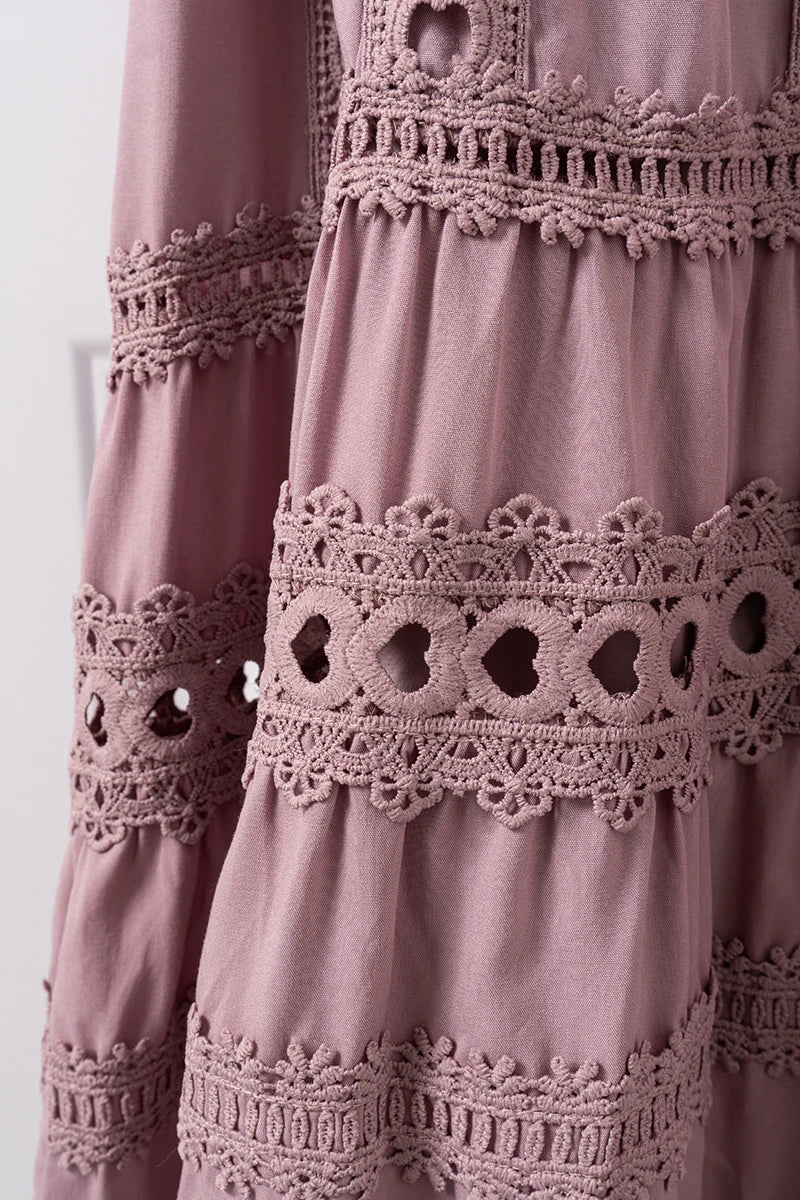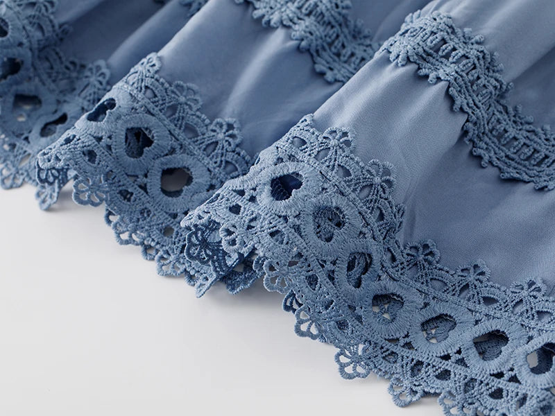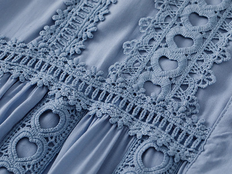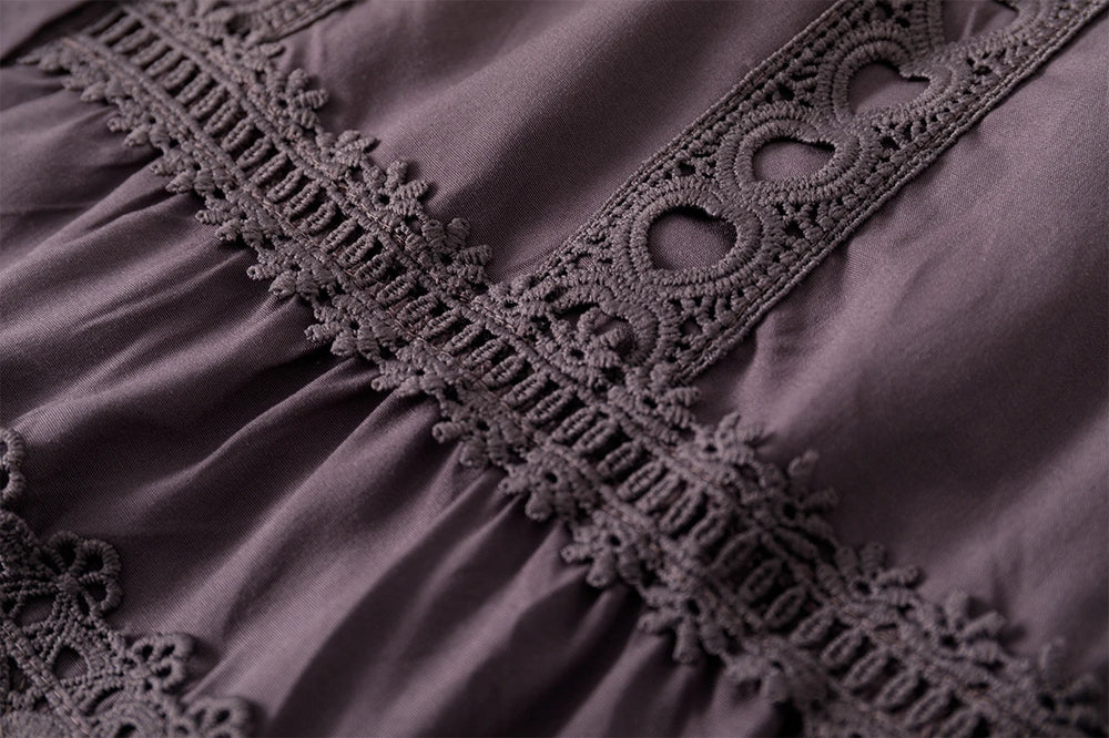 Made from premium materials, this dress features delicate hollow lace splicing that adds texture and dimension without compromising comfort. The boho retro style is elevated through refined fabric choices that provide both durability and a luxurious feel.