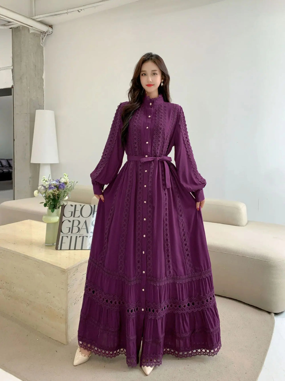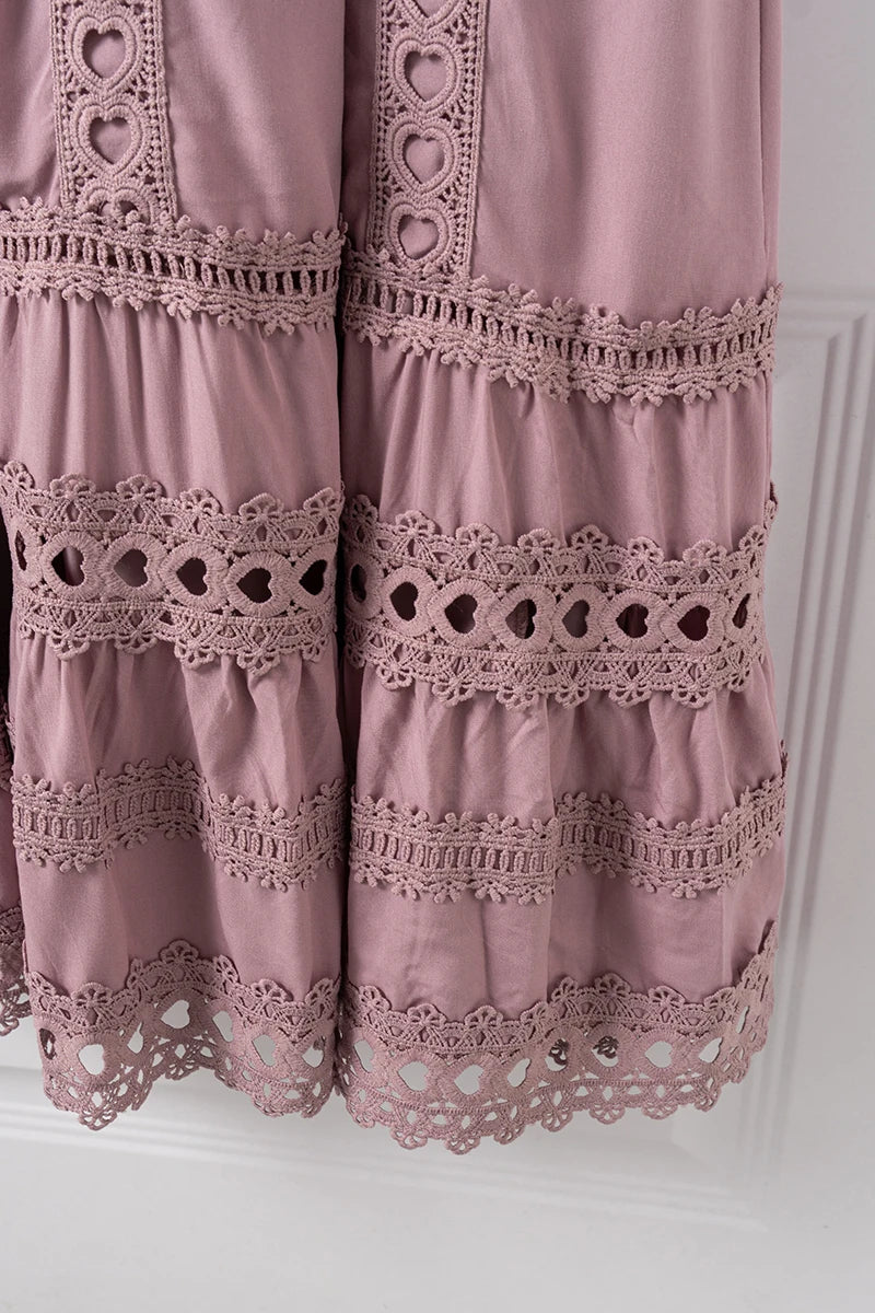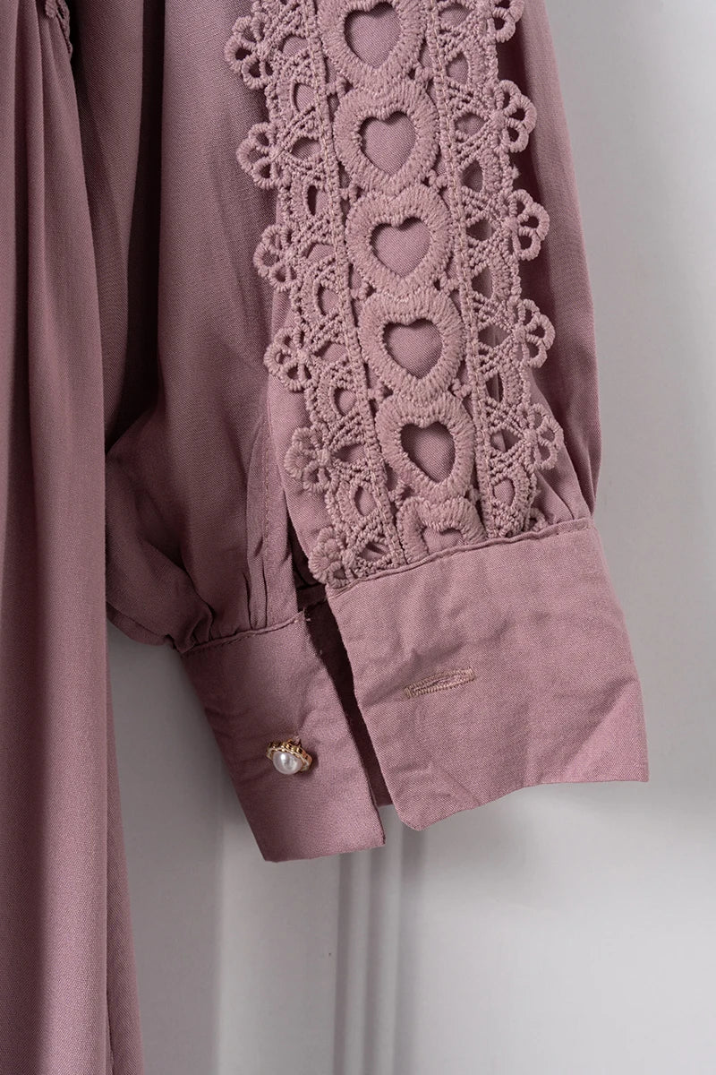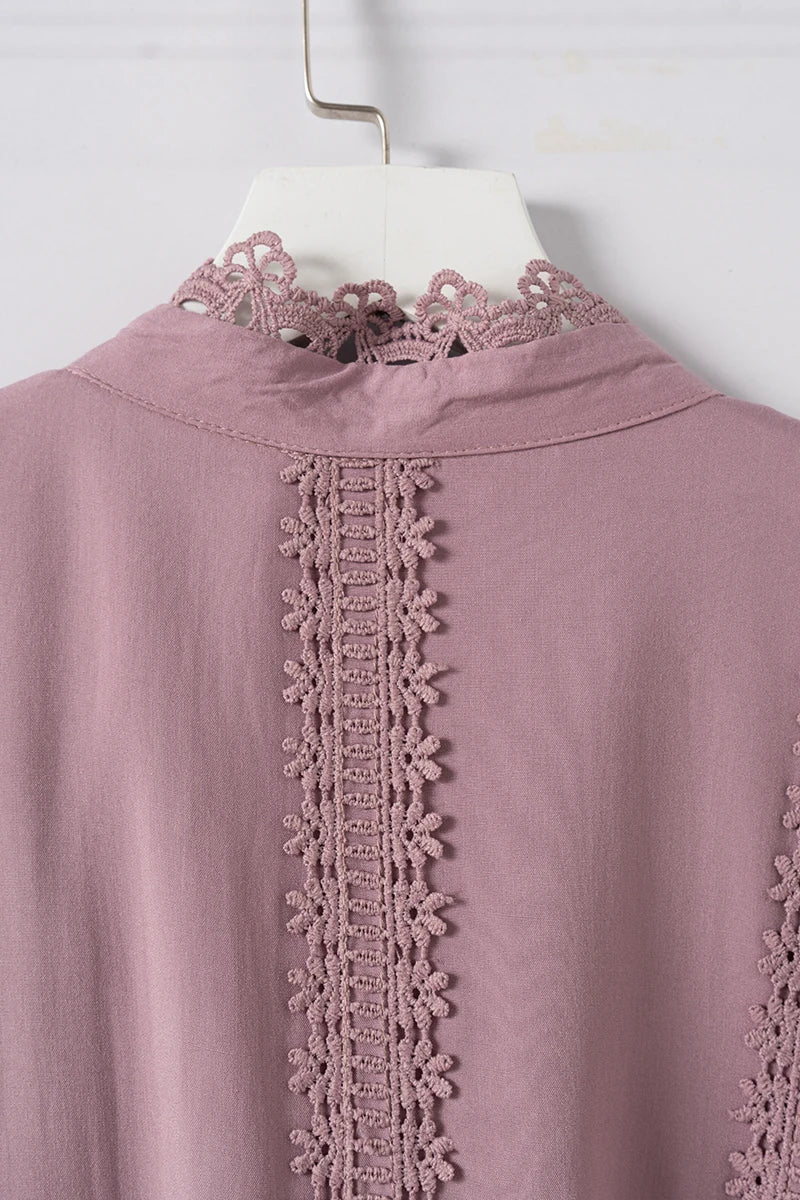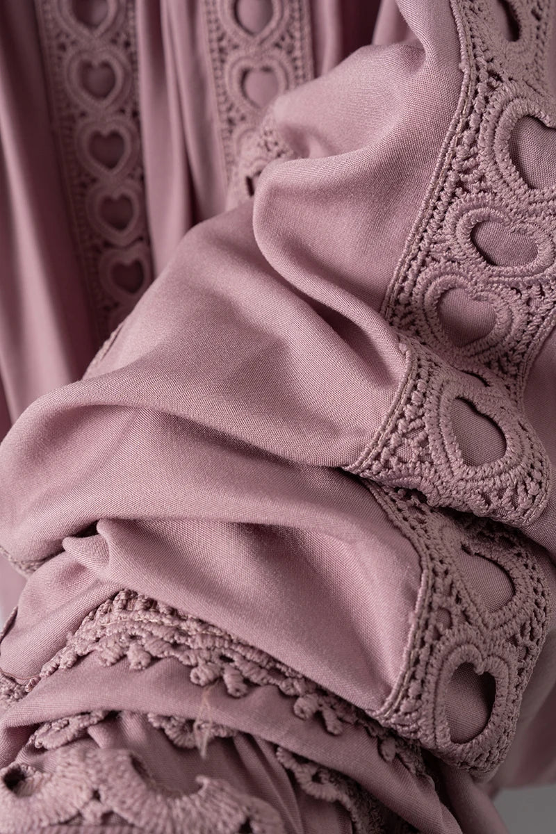 Made from premium materials, this dress features delicate hollow lace splicing that adds texture and dimension without compromising comfort. The boho retro style is elevated through refined fabric choices that provide both durability and a luxurious feel.