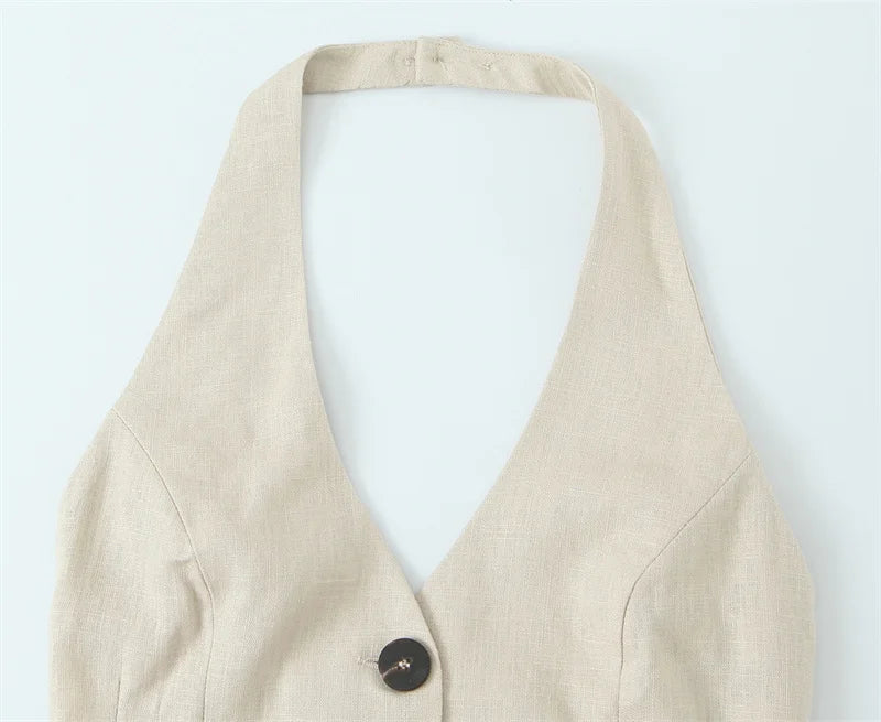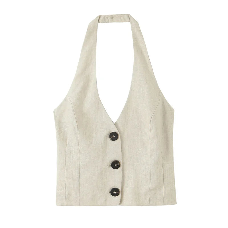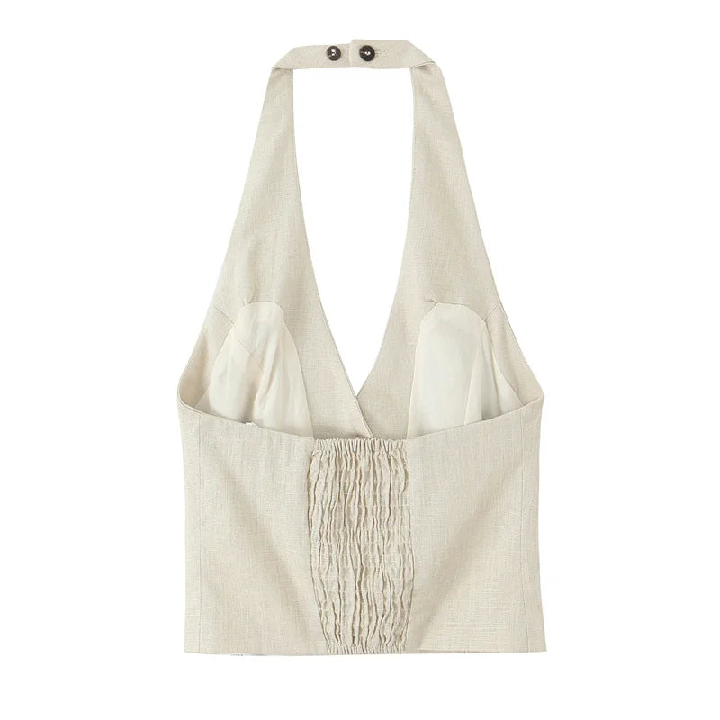 Rooted in meticulous craftsmanship, this top reflects the art of tailoring perfected for the modern woman. Every stitch is thoughtfully placed to enhance the flattering halterneck silhouette, capturing both elegance and boldness in one versatile piece.