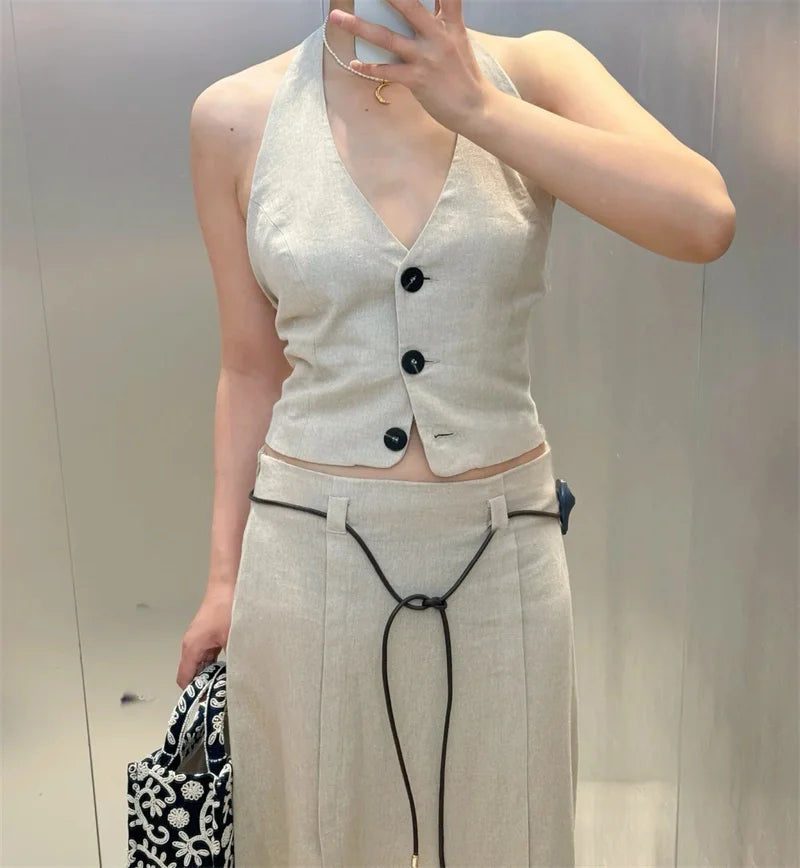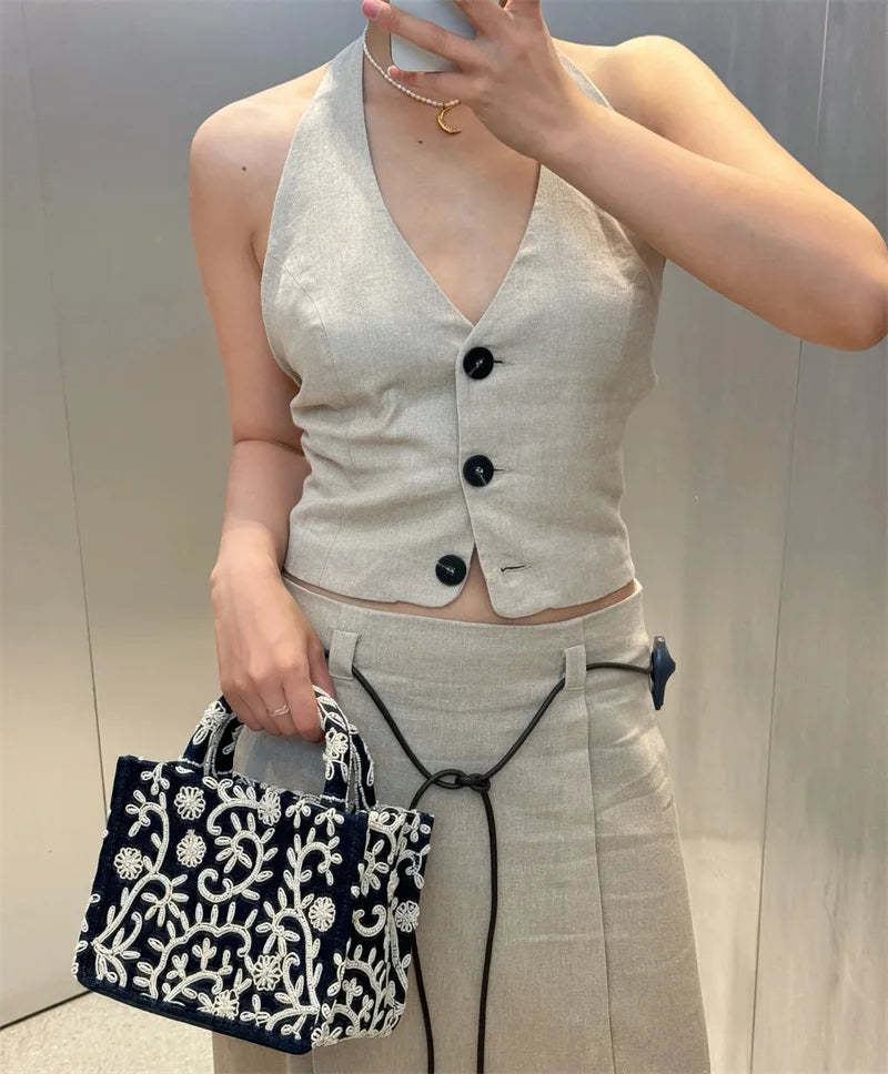 This halterneck top is part of a limited-edition release in the 2025 collection, making it not only a fashionable addition but also a coveted piece for trend-conscious individuals. Available in sizes XS to L with lengths ranging from 29.92 to 34.65 inches, it promises the perfect fit to suit your style needs.