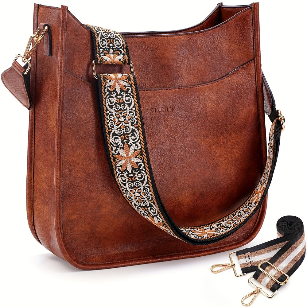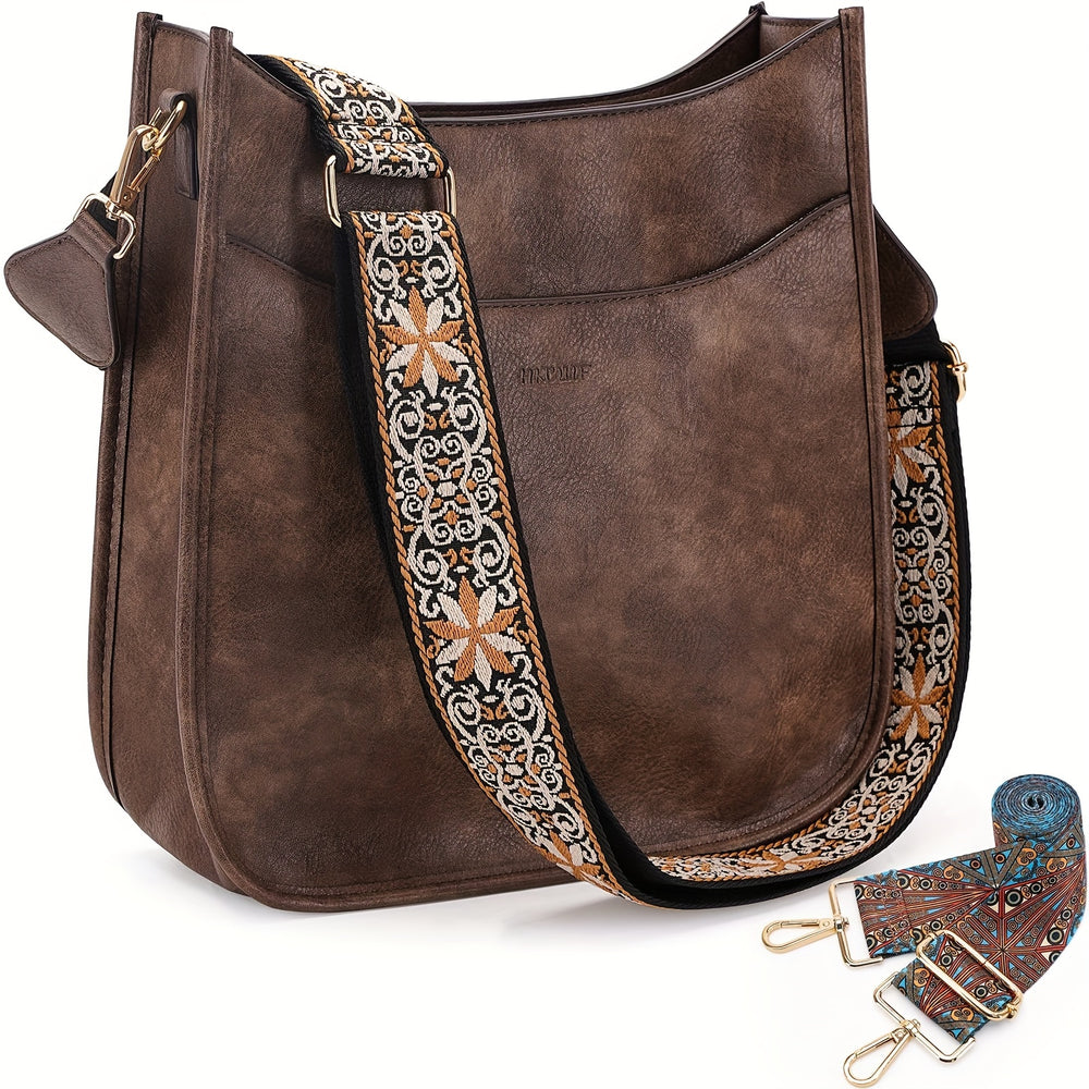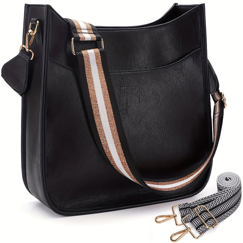 This 2PCS Adjustable Guitar Strap Vegan Leather Crossbody Bag for Women Hobo Handbags Purse Shoulder Bucket Bag is more than an accessory—it’s a symbol of status and prestige. Whether worn to a casual outing or a formal event, it enhances your ensemble with subtle confidence and refined taste.