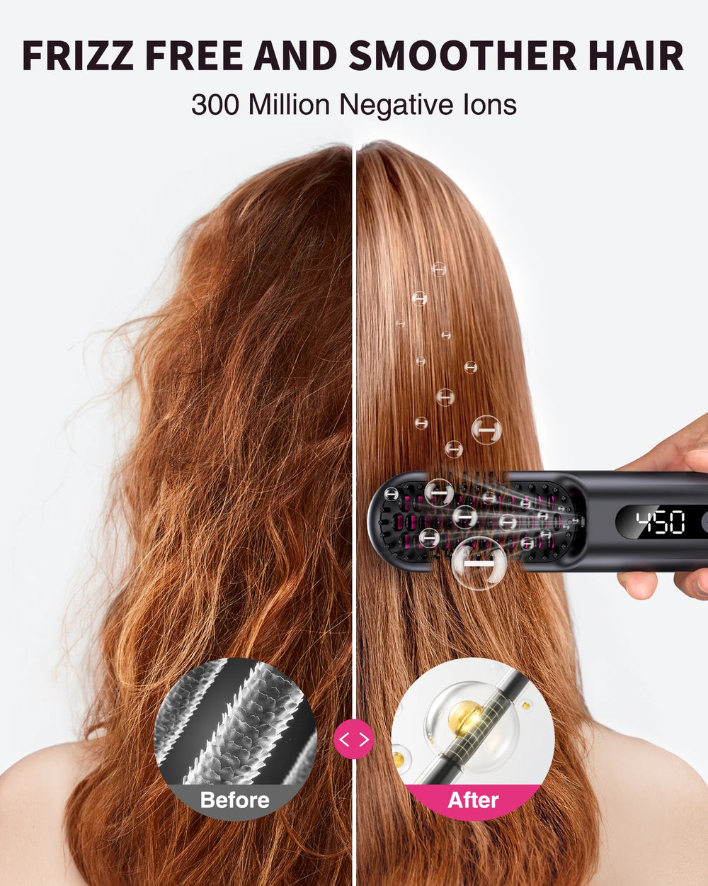 This challenge impacts your day by adding unnecessary stress and delay to your styling process, causing you to avoid certain hairstyles or feel self-conscious about your appearance. The BOPCAL Cordless Hair Straightener Brush is the perfect solution to simplify your hair care while protecting your hair’s health and boosting your confidence. This innovative styling tool combines convenience with advanced technology to deliver smooth, manageable hair wherever you are.