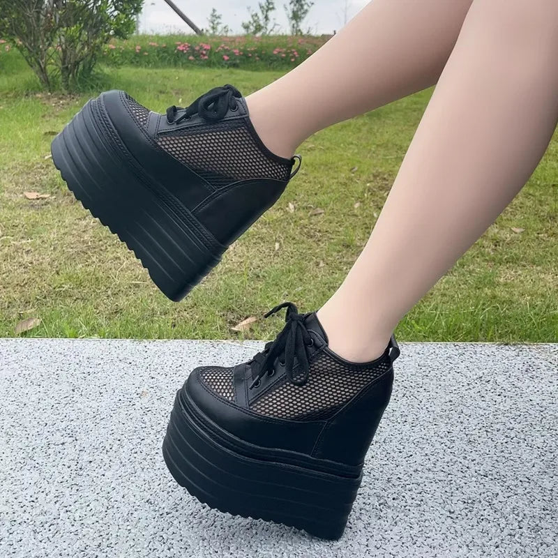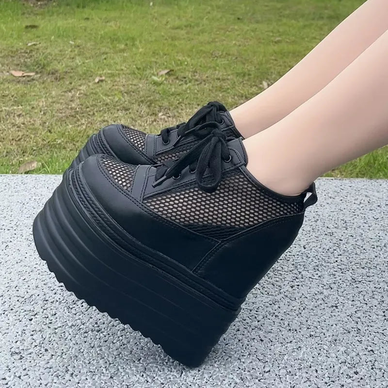 Made from high-quality breathable mesh, these sneakers allow your feet to stay cool and fresh, even on the hottest summer days. The platform heels are available in 14cm and 16cm heights, giving you the option to choose the perfect lift for any occasion.