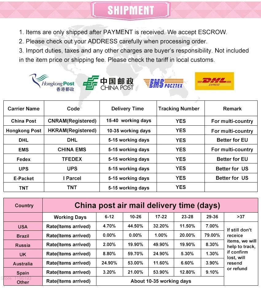 | Worldwide Delivery | We ship internationally to most countries. Tracking provided with every order. |