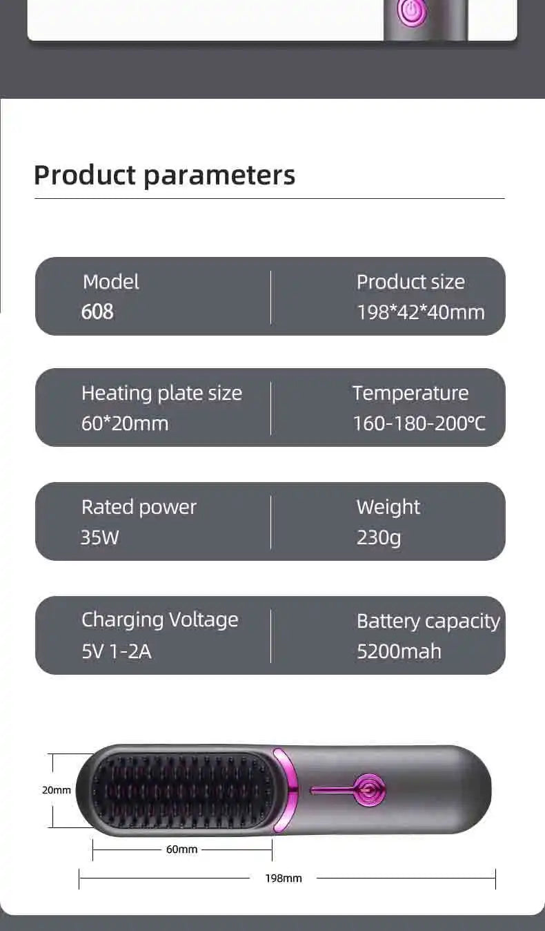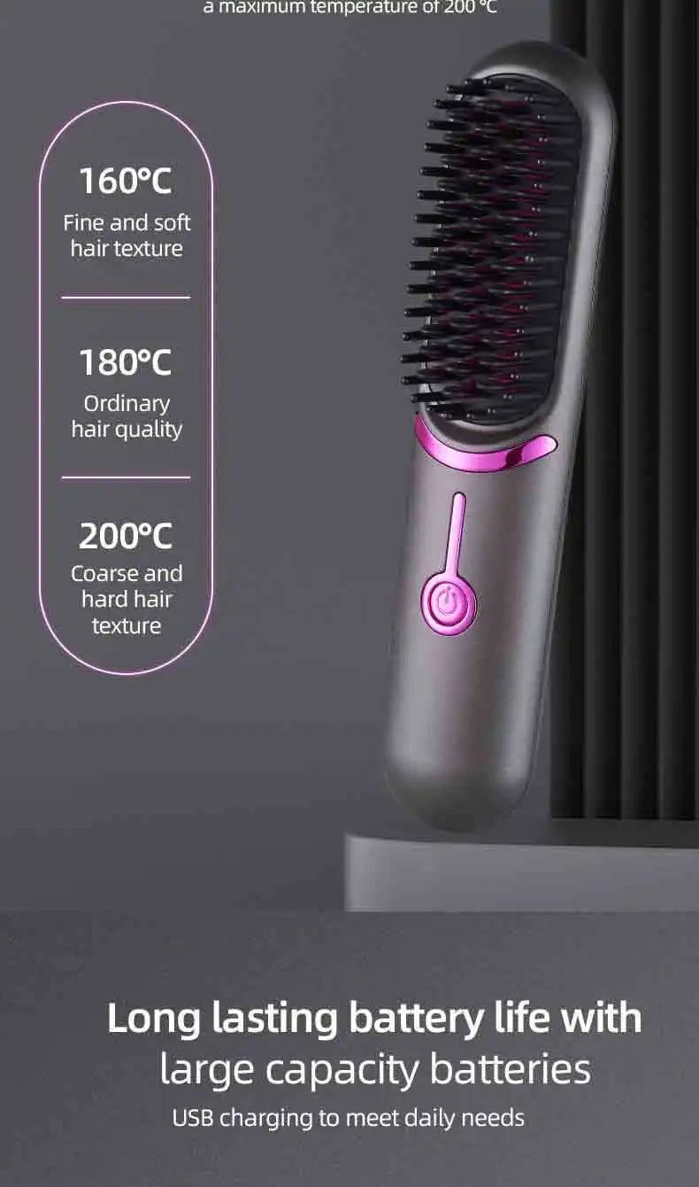Don’t let bad hair days hold you back. Upgrade your hair care routine with this cordless hair straightening brush and enjoy the freedom of flawless, beautiful hair anytime, anywhere. Embrace a sleeker, more confident you—order now and experience the convenience and power of smooth hair on the go.
