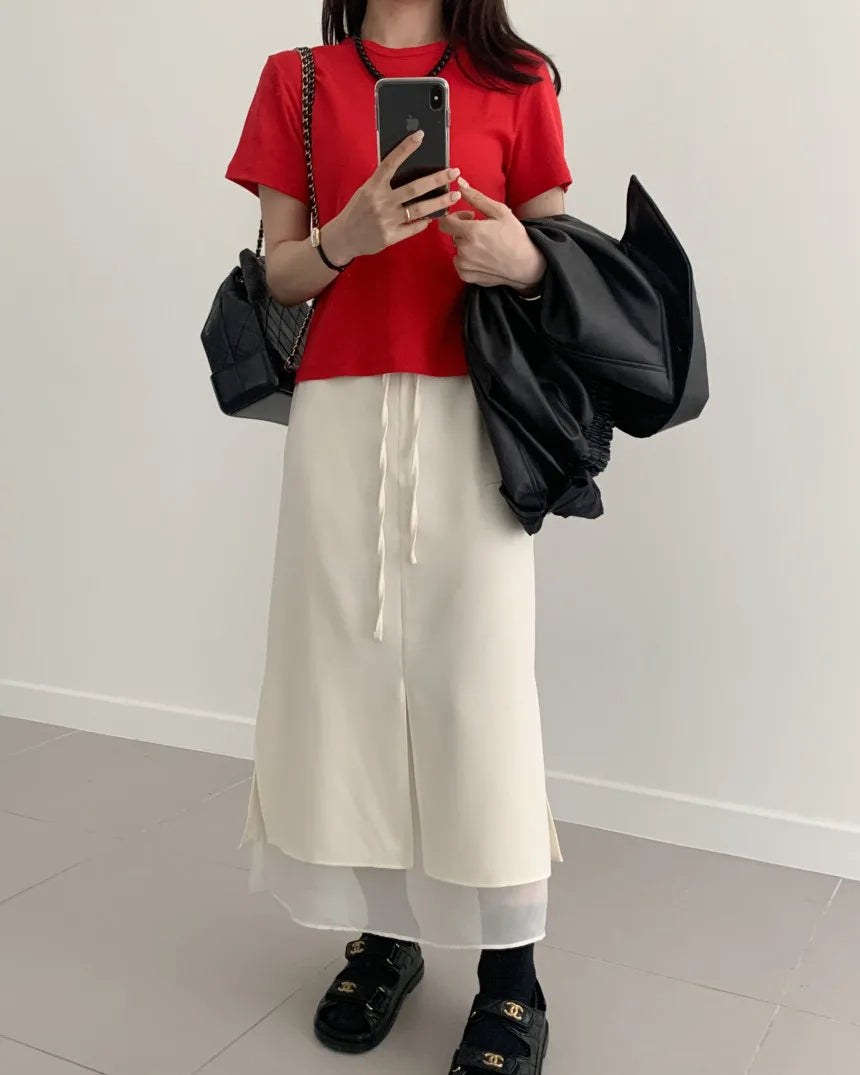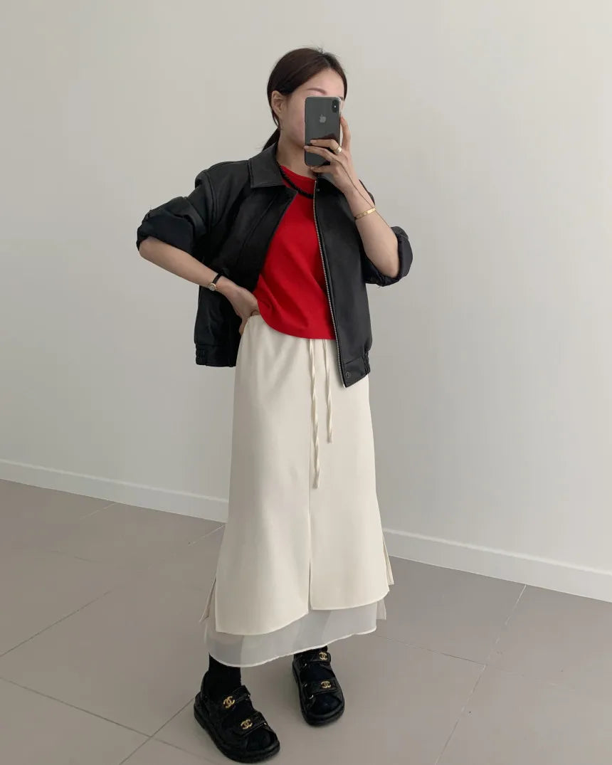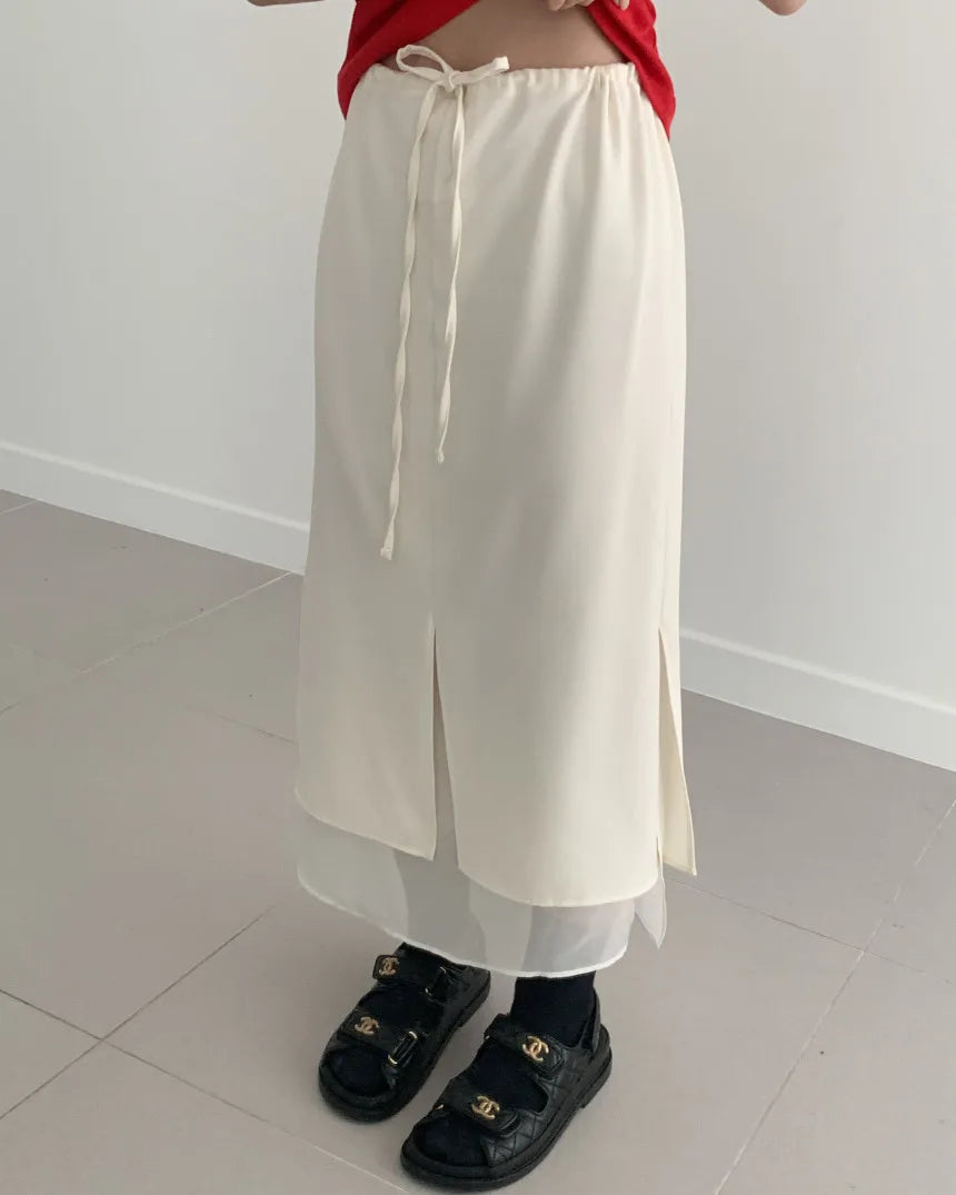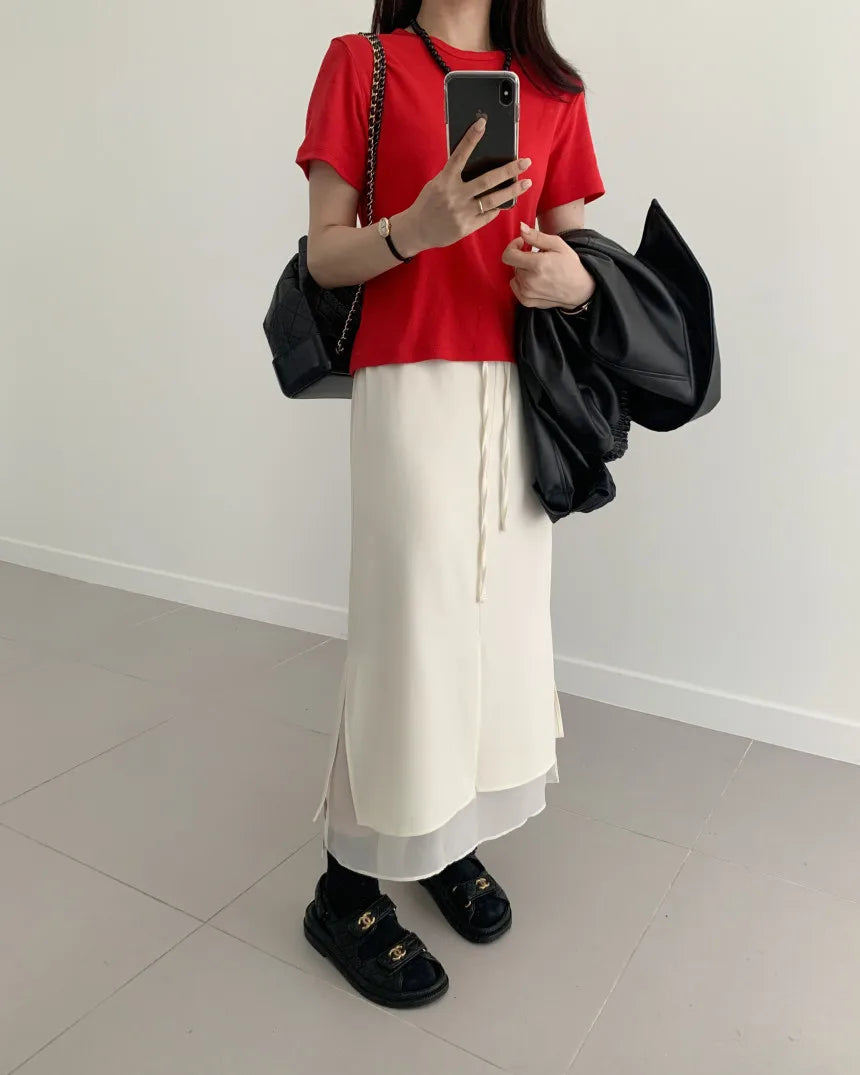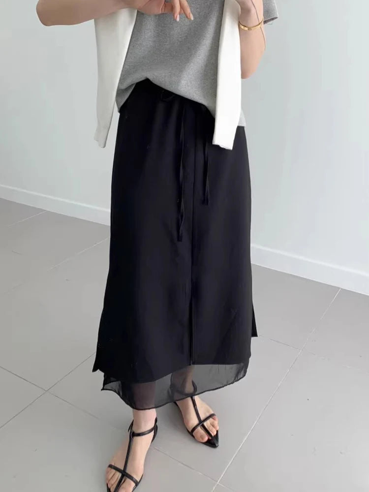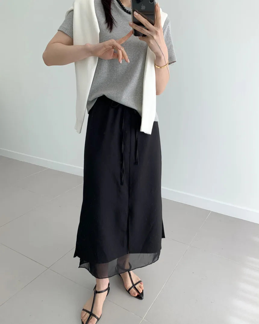 Celebrate the vibrancy of spring with this Double Layered Belted Straight Cut Long Skirt, a special new edition crafted to refresh your seasonal wardrobe. This release showcases a sophisticated Korean-inspired design that perfectly captures the spirit of spring, blending comfort with chic elegance for young women aged 18-24. Whether you're attending birthday parties, casual outings, or simply enjoying the warmer weather, this skirt offers a stylish way to embrace seasonal trends.