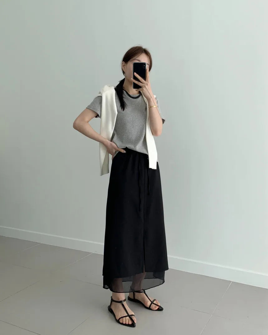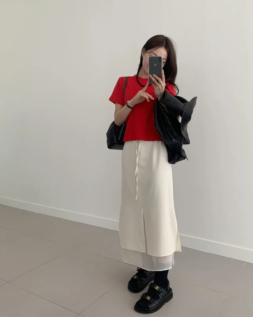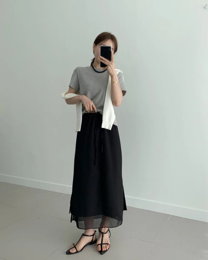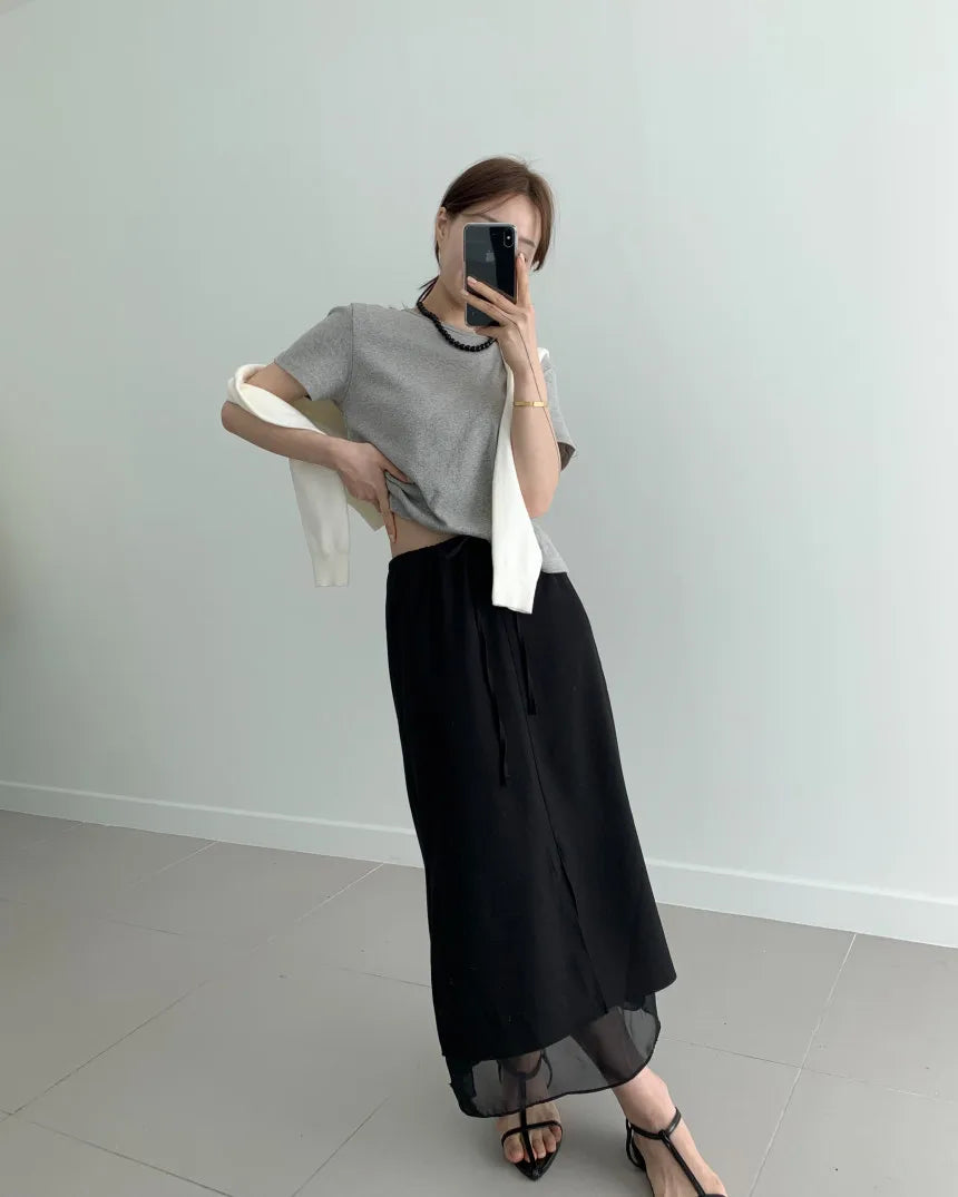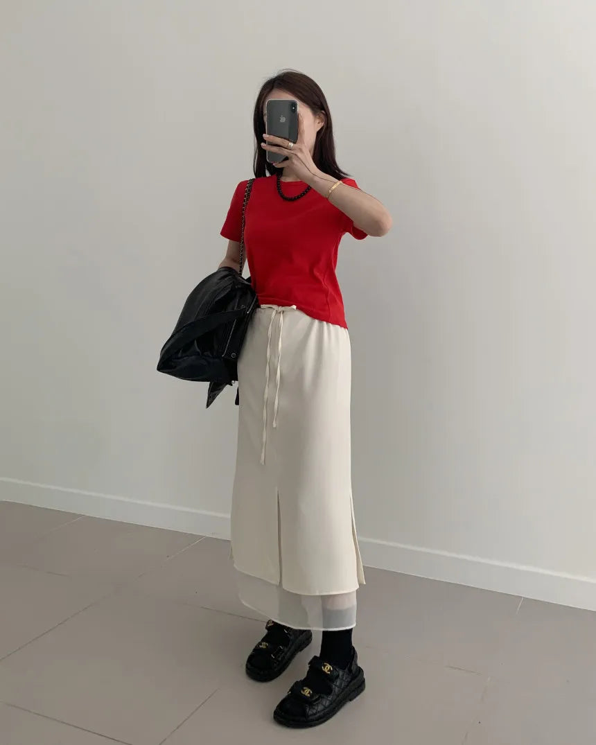Celebrate the vibrancy of spring with this Double Layered Belted Straight Cut Long Skirt, a special new edition crafted to refresh your seasonal wardrobe. This release showcases a sophisticated Korean-inspired design that perfectly captures the spirit of spring, blending comfort with chic elegance for young women aged 18-24. Whether you're attending birthday parties, casual outings, or simply enjoying the warmer weather, this skirt offers a stylish way to embrace seasonal trends.