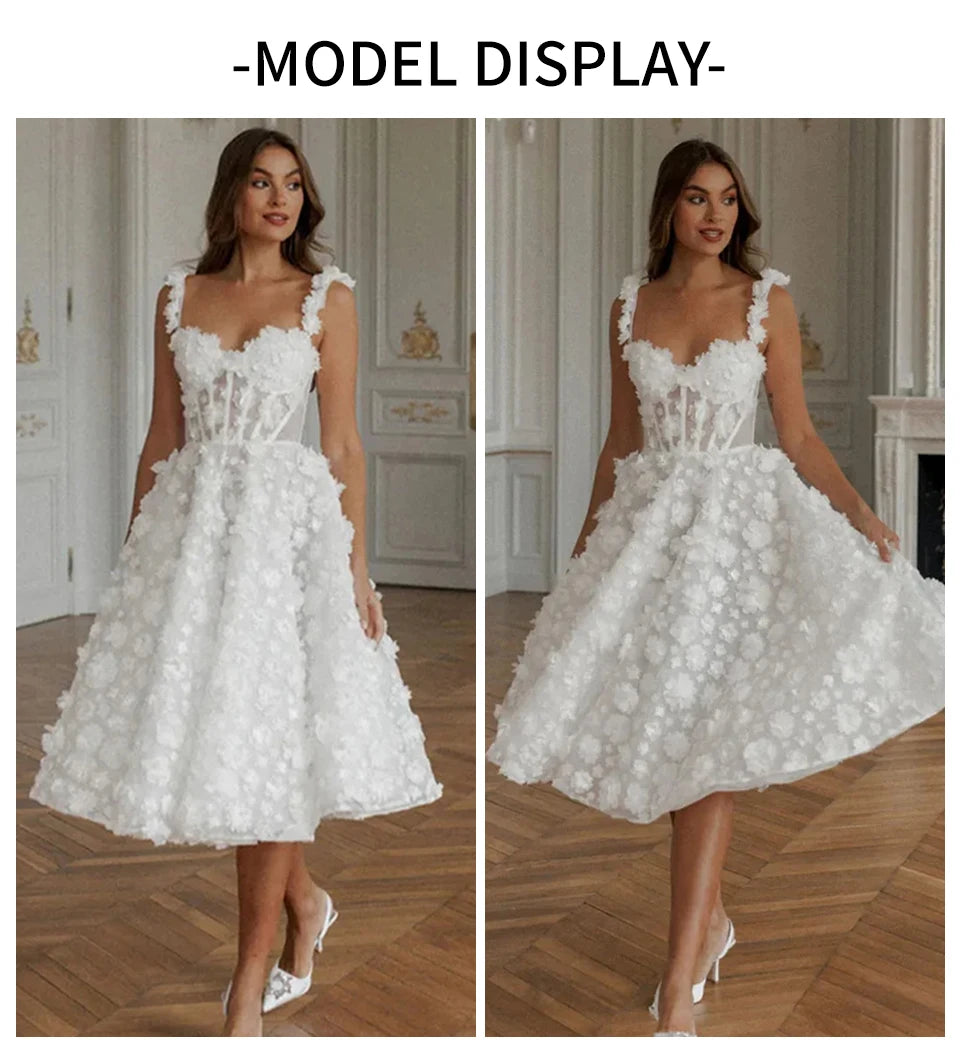 Available in limited quantities, this Elegant White Short Wedding Party Dress for Woman Knee Length Corset Prom Dress Flower Applique Spaghetti Strap Evening Dress is a special edition piece designed for those who appreciate luxury and uniqueness.