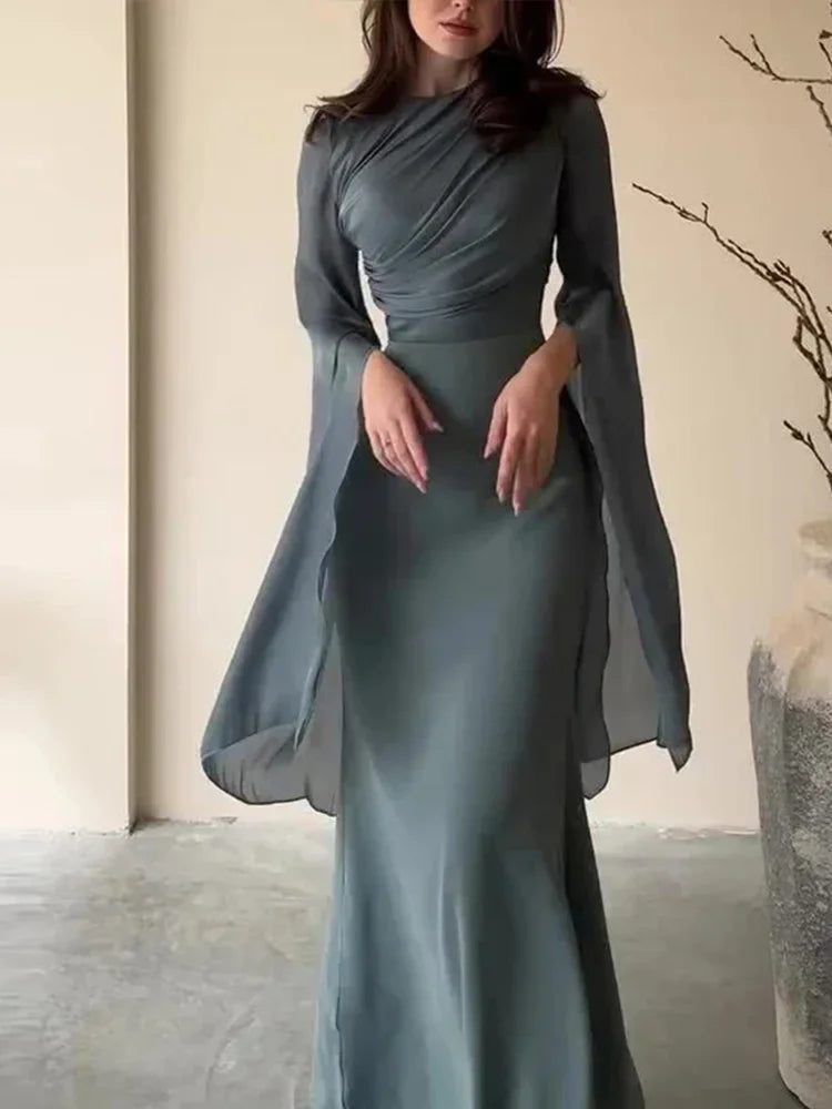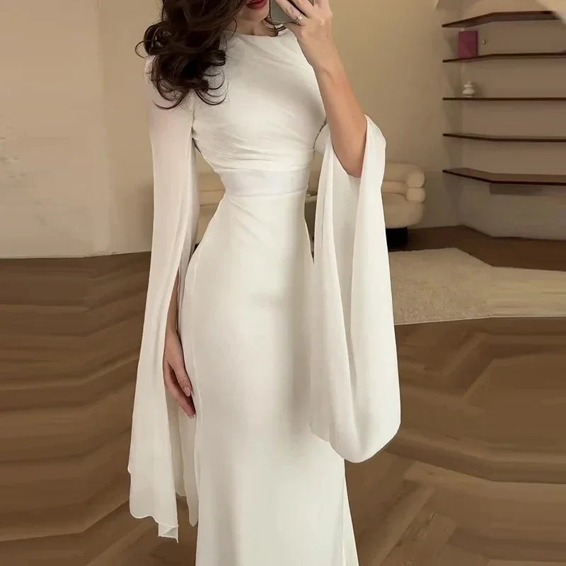 Inspired by classic craftsmanship, the dress showcases expert tailoring that highlights a slim, high-waisted fit coupled with elegant batwing sleeves. Each detail is meticulously crafted to offer both comfort and a flattering shape, making it a wardrobe staple for any discerning woman.