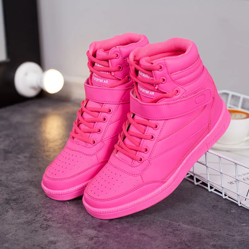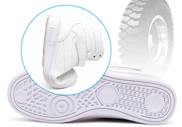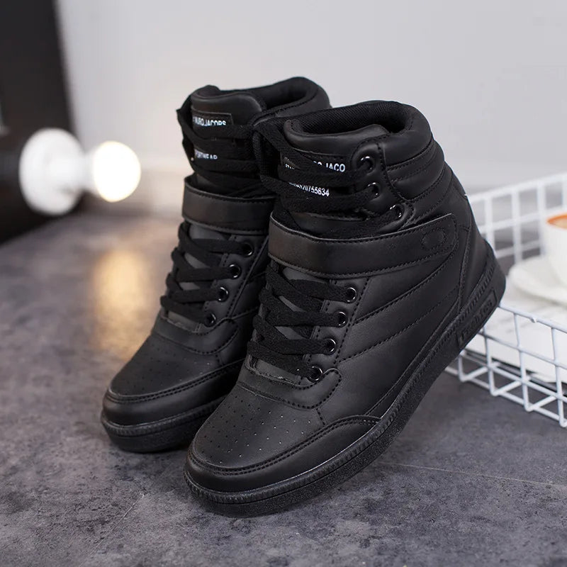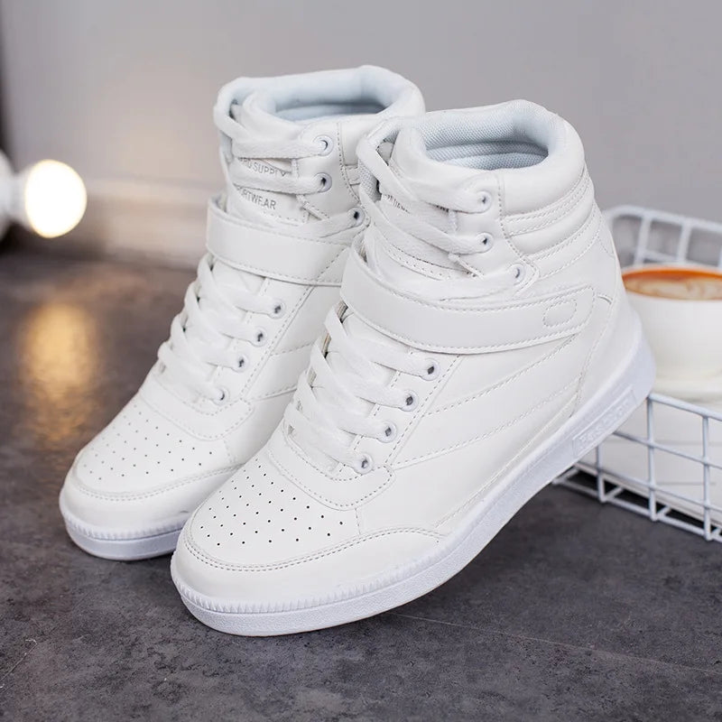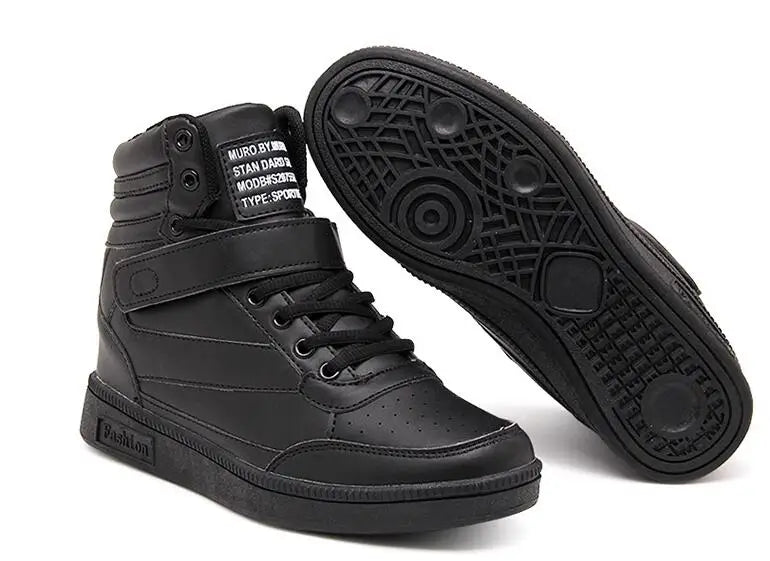 Experience unparalleled exclusivity with the Hidden Height Increasing Women Sneakers, designed specifically for autumn and winter wear. These premium PU leather trainers redefine casual luxury by seamlessly blending subtle height enhancement with everyday comfort. For women who desire a stylish boost without compromising on sophistication, these high-top sport shoes are the ultimate addition to your footwear collection.