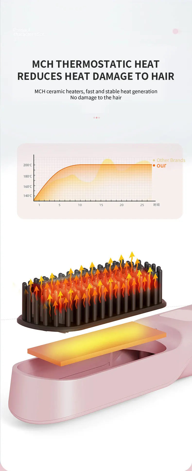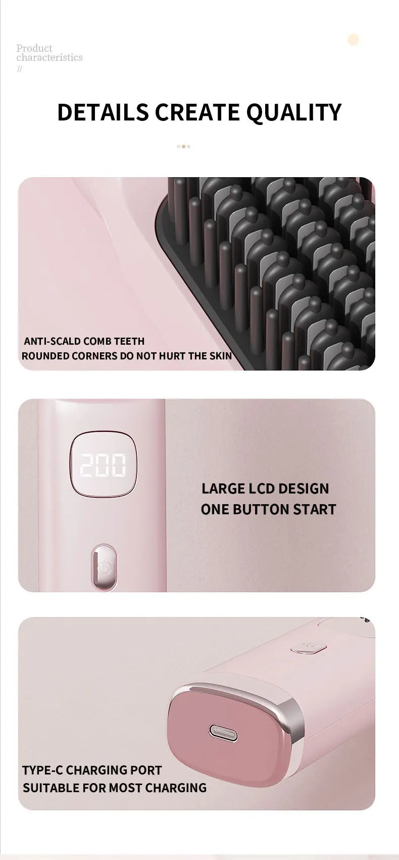 The HIENA Straight Hair Comb For Women Wireless Negative Ion Curling Iron offers the perfect solution to these common hair-styling challenges. This portable cordless hair curler lets you create beautiful, salon-quality curls effortlessly, no matter where you are. Say goodbye to cord restrictions and hello to freedom in styling anytime, anywhere.