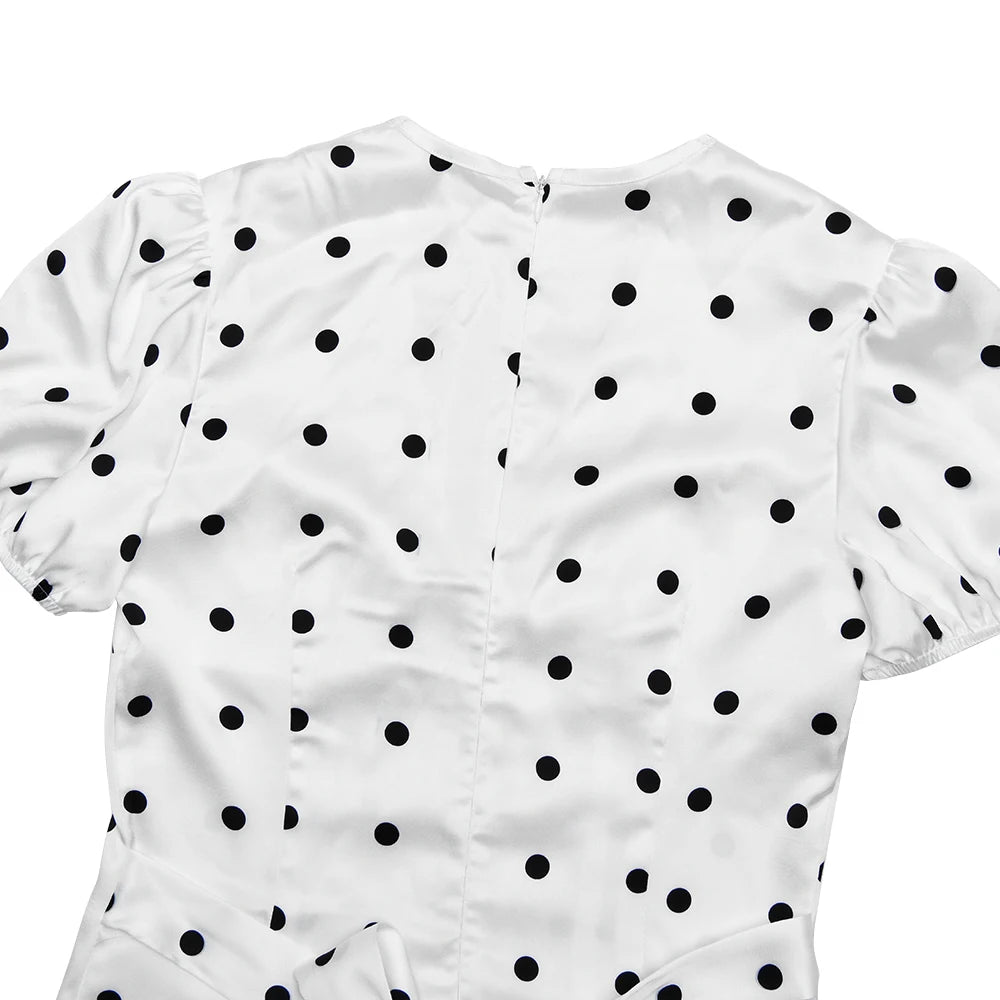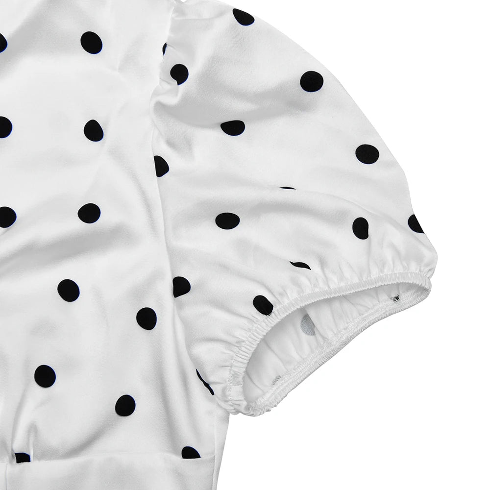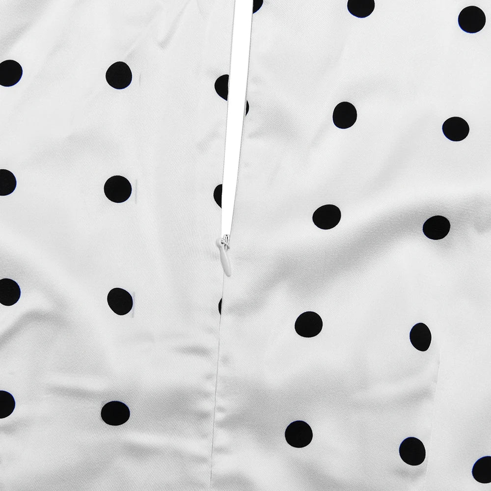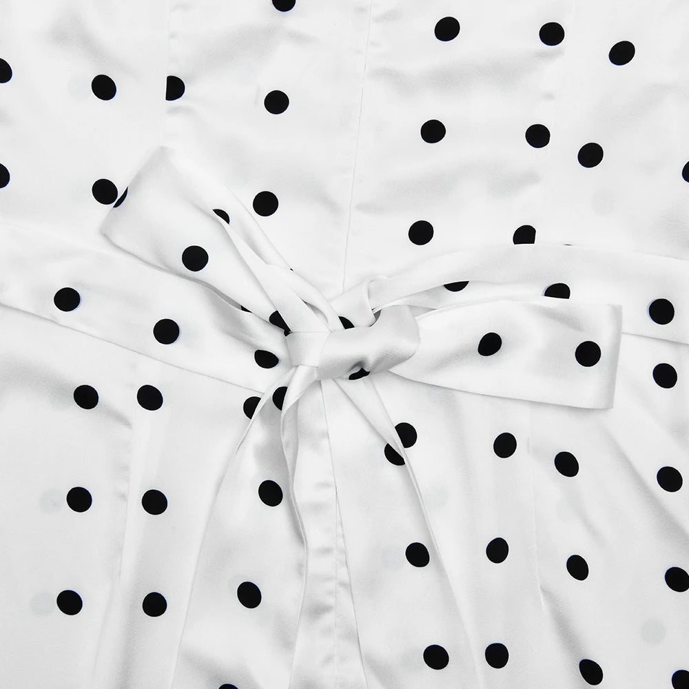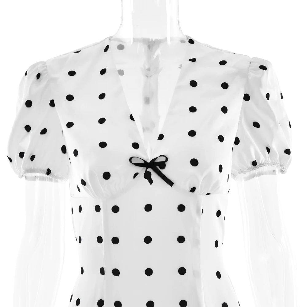 Exclusively designed for the modern woman who values both elegance and comfort, this JULISSA MO Sexy V-neck Print Polka Dot Women Maxi Dress White Short Sleeve Lace Up Dress Summer Slim Elegant Party Evening Dress stands out as a statement piece in any wardrobe. Crafted with meticulous attention to detail, it offers a seamless blend of style and sophistication, ideal for summer soirées and special occasions.