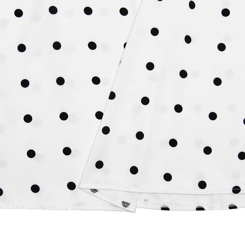 Rooted in expert craftsmanship, each dress is thoughtfully constructed to highlight timeless femininity and refined tailoring. The intricate lace-up detail and iconic polka dot print pay homage to classic fashion, reimagined for today’s elegant woman. This dress embodies a perfect balance between tradition and contemporary flair.