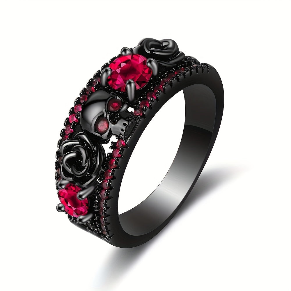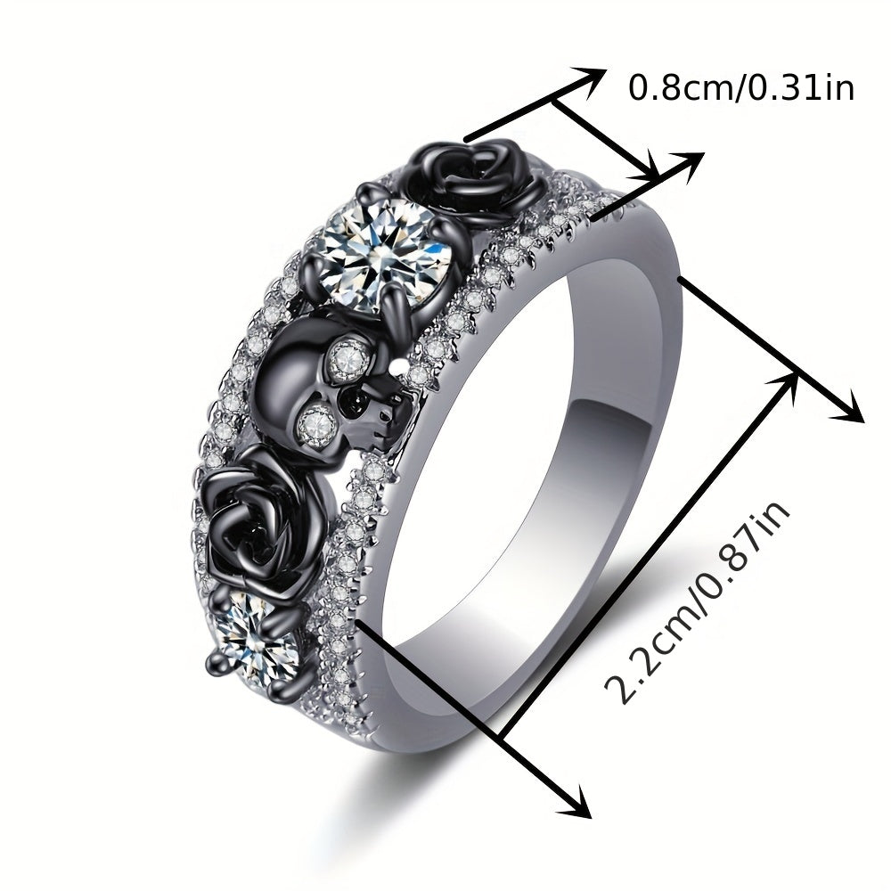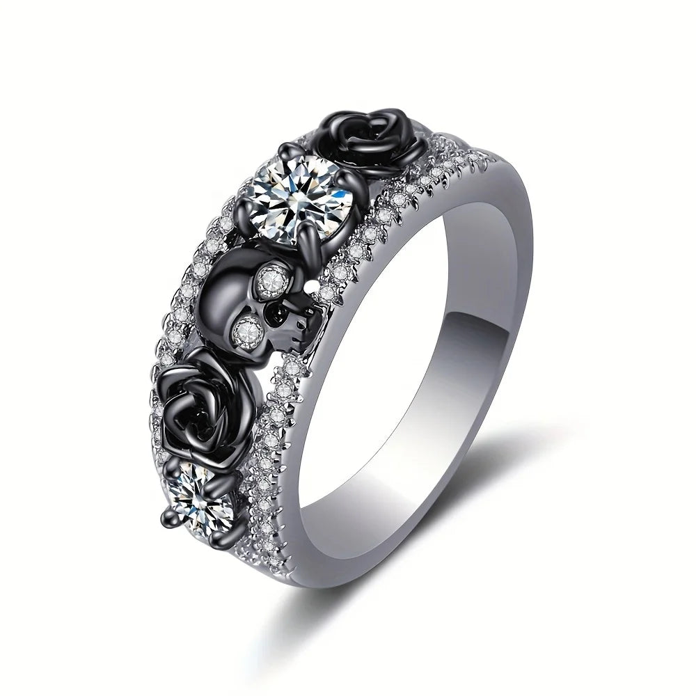 Experience the ultimate expression of individuality with the Punky Style Ring Horror Skull & Rose Design Paved Shining Zirconia Suitable for Men and Women Rings. This exclusive piece transcends ordinary fashion, making a bold statement for those who dare to stand out in any crowd.