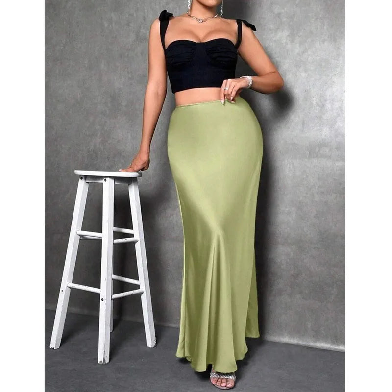 Step into summer 2025 with this exclusive stained satin skirt, designed to refresh your wardrobe with elegance and ease. This special edition features a simple imitation silk long skirt crafted for women who want to blend classic sophistication with contemporary style. Whether you’re dressing for a lively night at the club or a polished office event, this skirt fits perfectly into your seasonal fashion essentials.