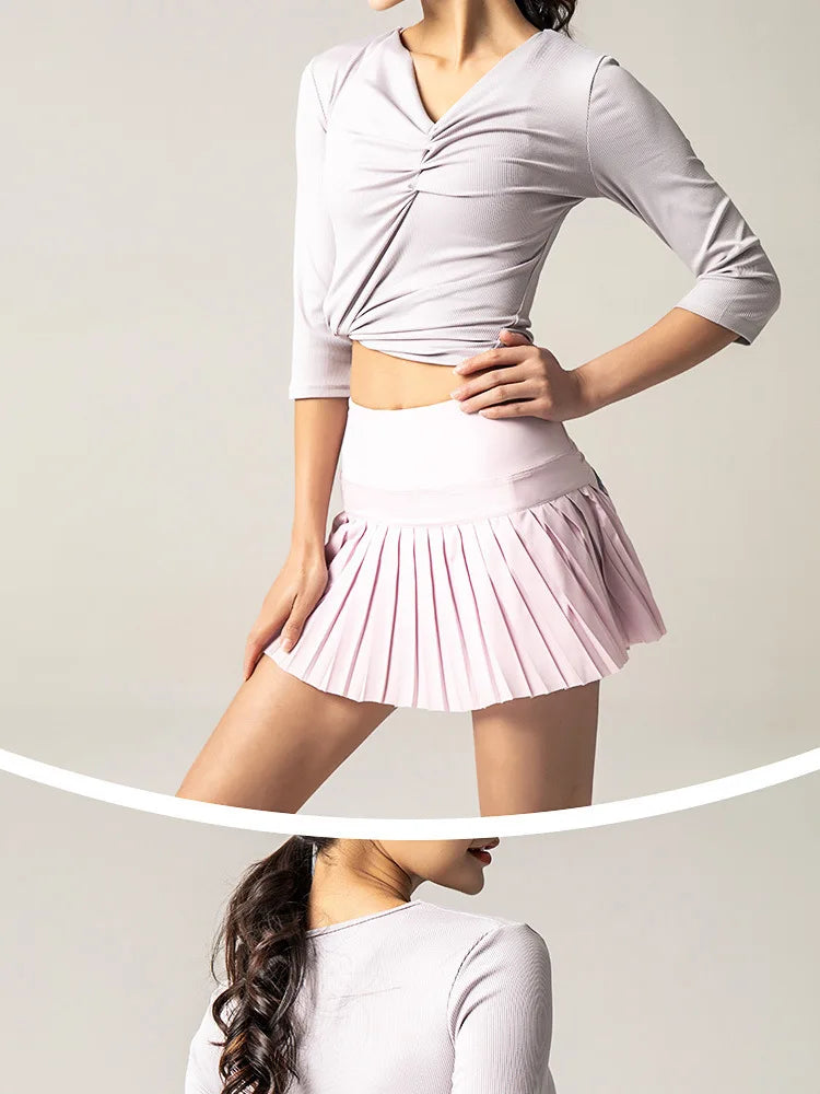 Celebrating the latest trends in athleisure and casual wear, this pleated yoga tennis skirt combines functionality with fashion. Whether you’re hitting the tennis courts, practicing yoga, or enjoying a casual day out, this skirt meets the demand for versatile apparel that supports movement without sacrificing style.