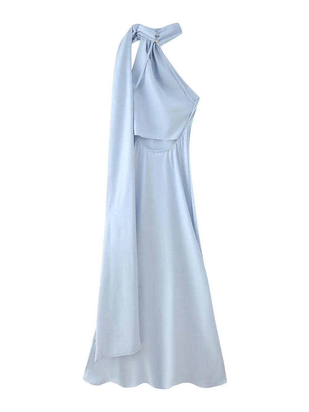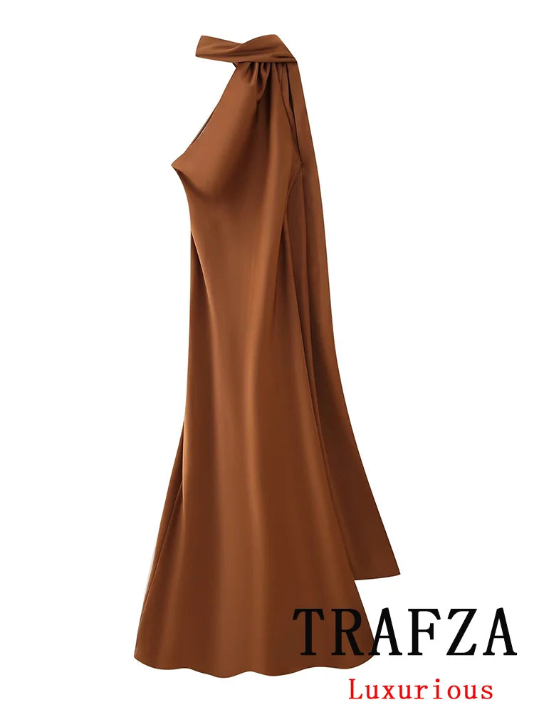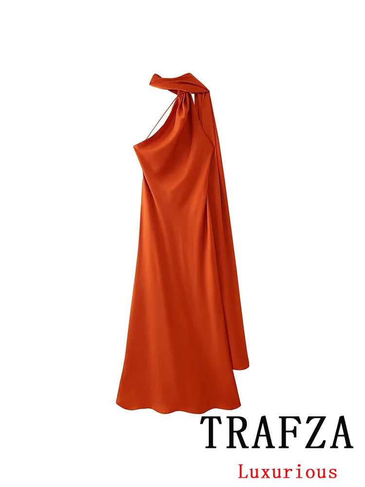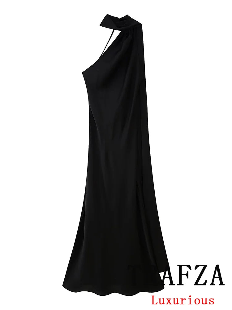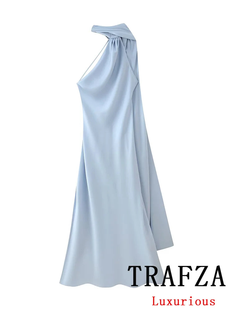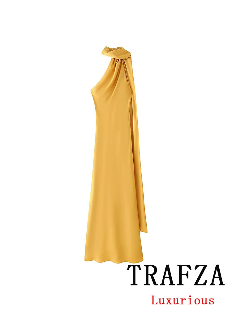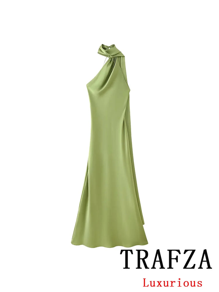 Step into the spotlight with a dress designed for those who demand nothing but the best. This TRAFZA Sexy Elegant Chic Women Halter Dress Satin Solid Ribbon Backless Long Dress Fashion 2025 Spring Summer Evening Club Dress is a must-have for women who appreciate exclusivity and refined style.