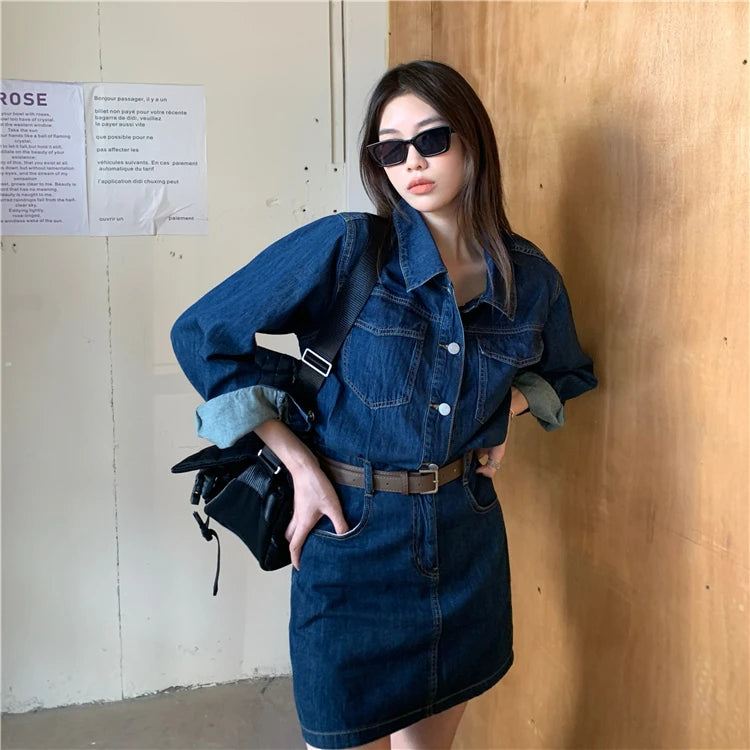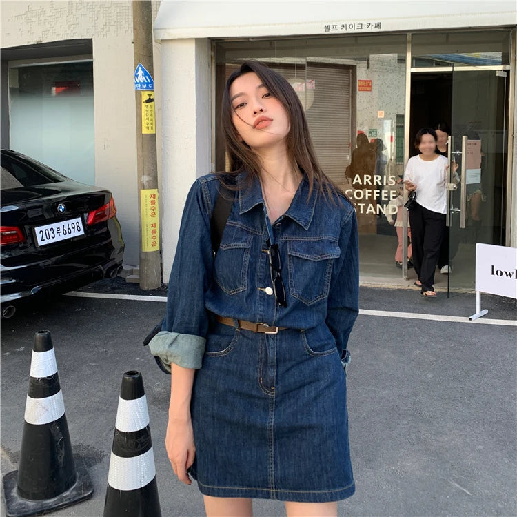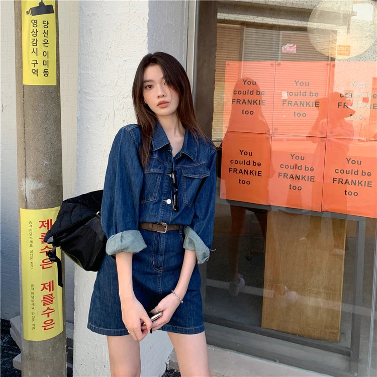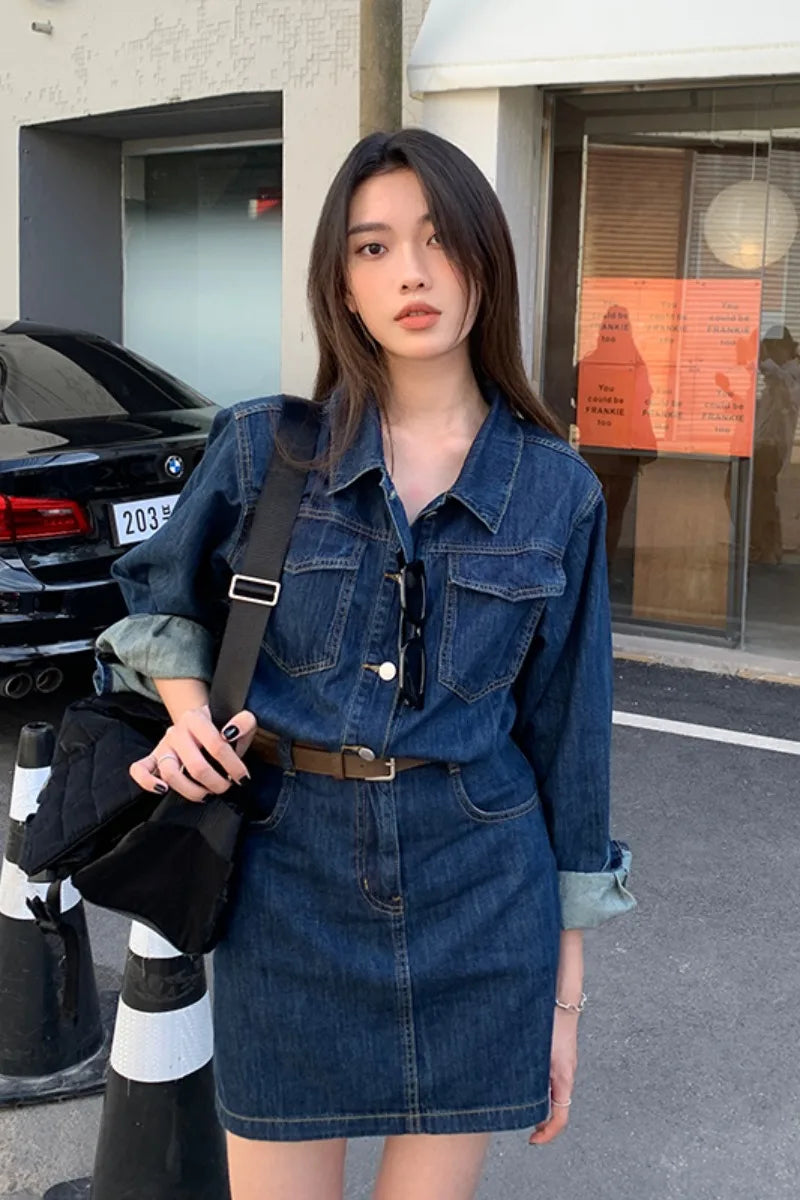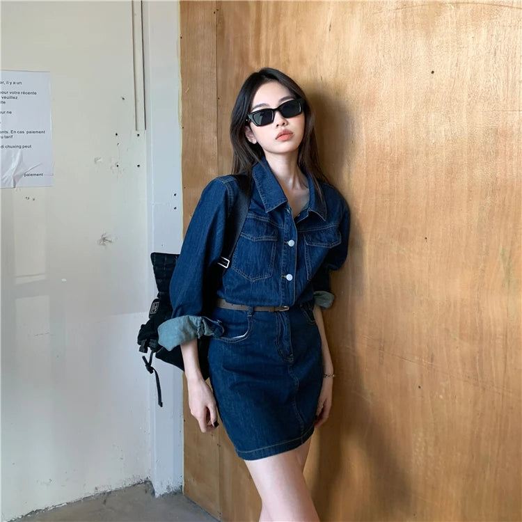 Experience the timeless charm of our Vintage Denim Dress for Women Spring Summer Long Sleeve Slim Fit Short Jean Dress Chic Female Casual Mini Dress Street Wear, crafted exclusively for those who appreciate unique style. This dress stands apart as a versatile piece that blends vintage appeal with modern trends, making it a must-have addition to your wardrobe.