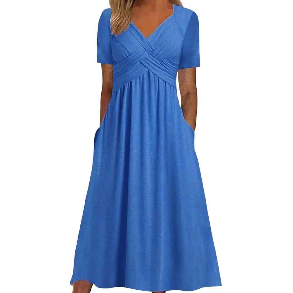 Experience unparalleled elegance with our Women A Line Pleated Maxi Dress Summer Solid Color Plus Size Ruffles Long Dresses 2024 New Short Sleeve Holiday Sundress Robe, designed exclusively for those who value both comfort and style. This dress embodies the refined charm of modern fashion, tailored to highlight your silhouette with a flattering A-line pleated cut that flows gracefully with every step.