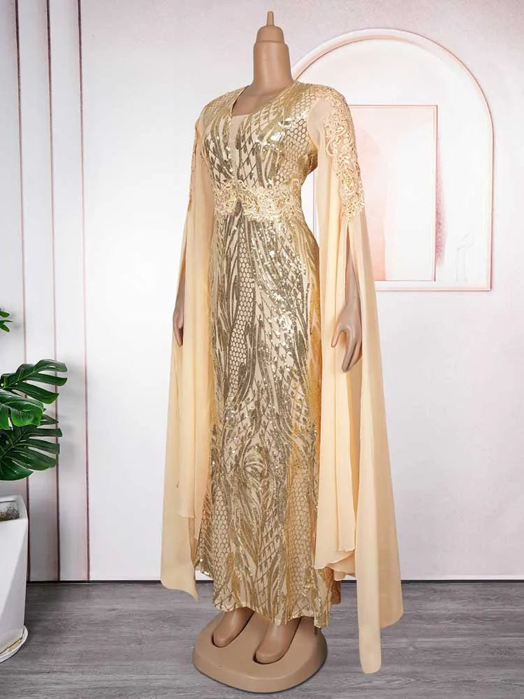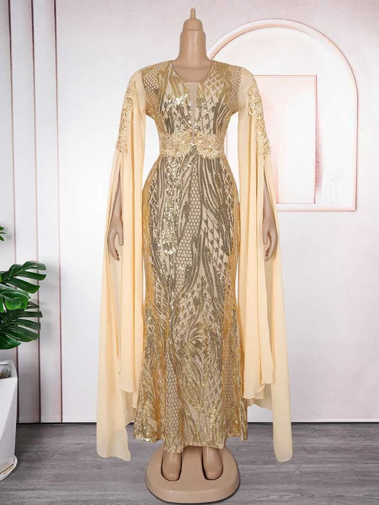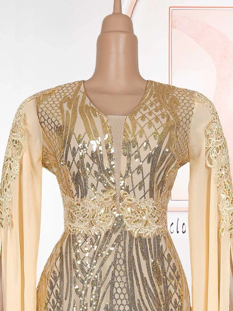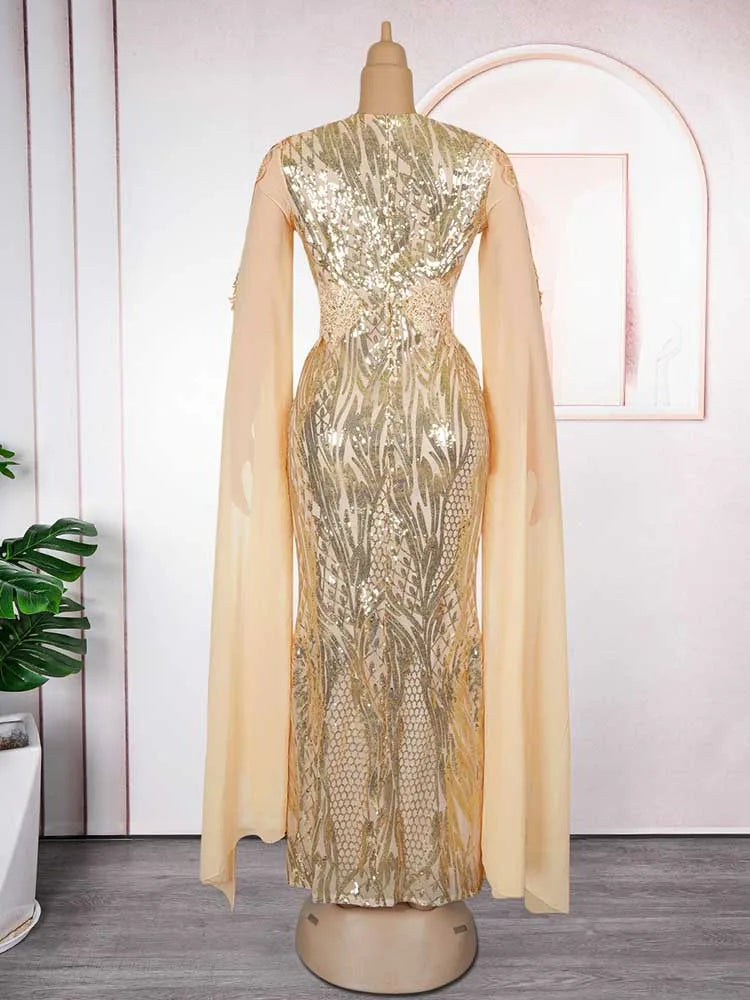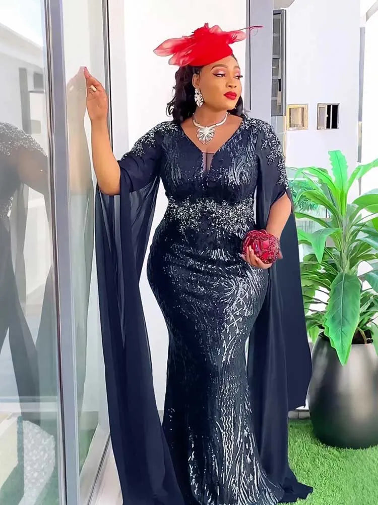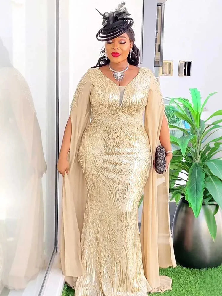 Constructed from premium materials, this plus size maxi dress offers a luxurious feel and comfortable fit that lasts all night. Its rich fabric complements the intricate sequin embellishments, making it ideal for Christmas parties and upscale events alike.