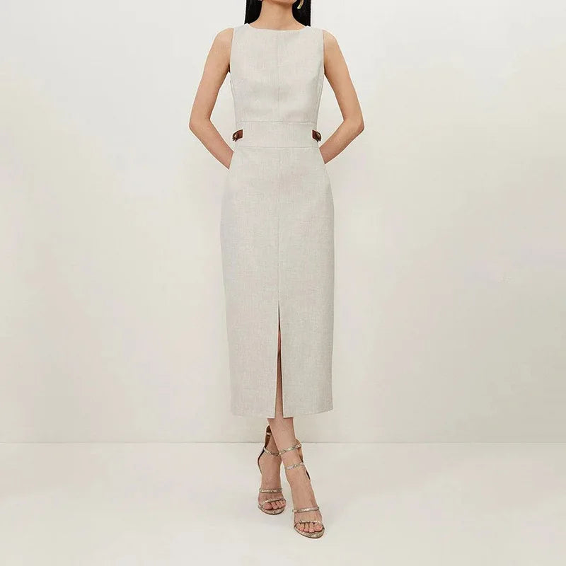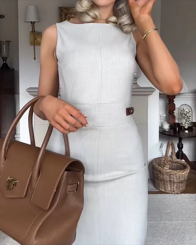 Exclusivity and elegance define this Women Dress Mid Length Dresses Solid Vestidos Round Neck Sleeveless Slim Fit Casual Elegant Splice Tight Waist Summer 2024. Designed for the discerning individual, this dress effortlessly blends casual charm with polished sophistication, making it a standout piece for any summer occasion.