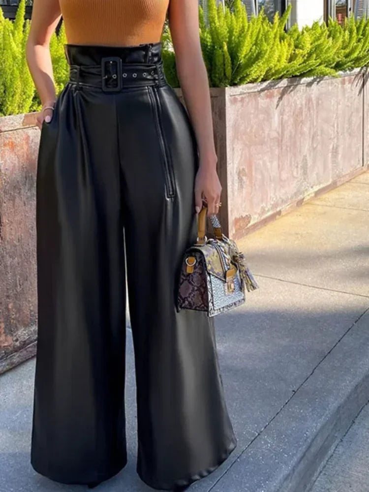 Experience unmatched exclusivity with these high waist PU leather black wide leg pants designed specifically for women who embrace casual fashion and streetwear trends. Crafted for those who appreciate both style and comfort, these pants promise a distinctive look that sets you apart in any setting.