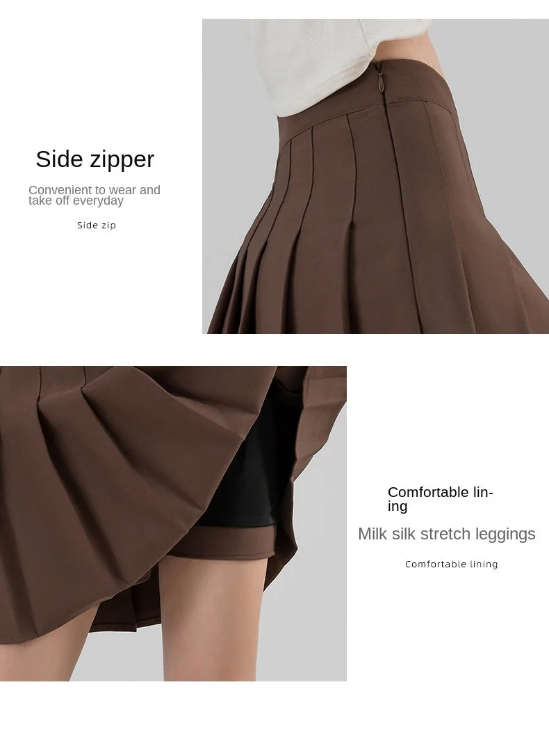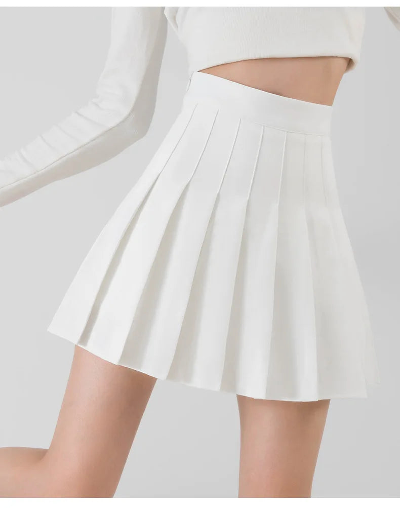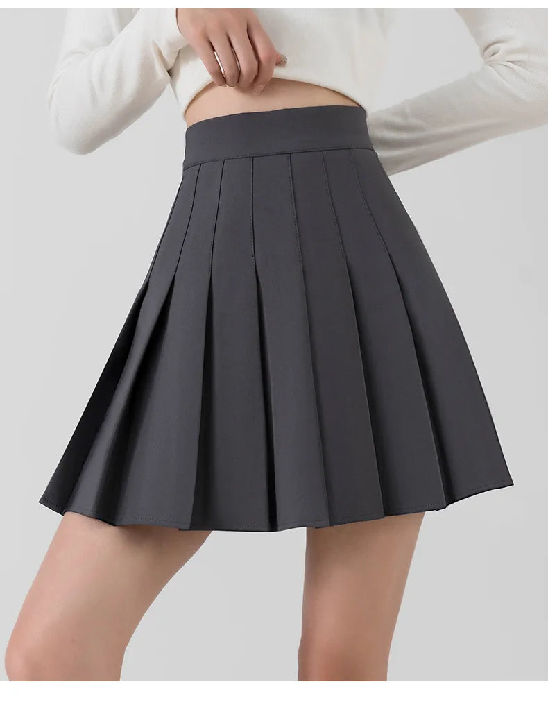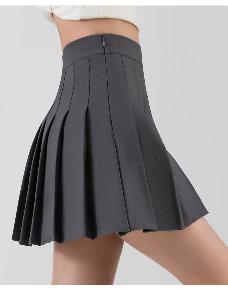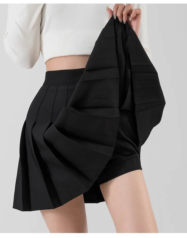 The high-quality, non-stretch woven fabric ensures durability and a lasting refined texture. Its above-knee mini length is perfect for active, confident movement, making it suitable for a variety of occasions—from casual campus days to stylish outings with friends. Available in sizes ranging from XS to XXXL, this black pleated skirt with built-in shorts guarantees a perfect fit for every woman.