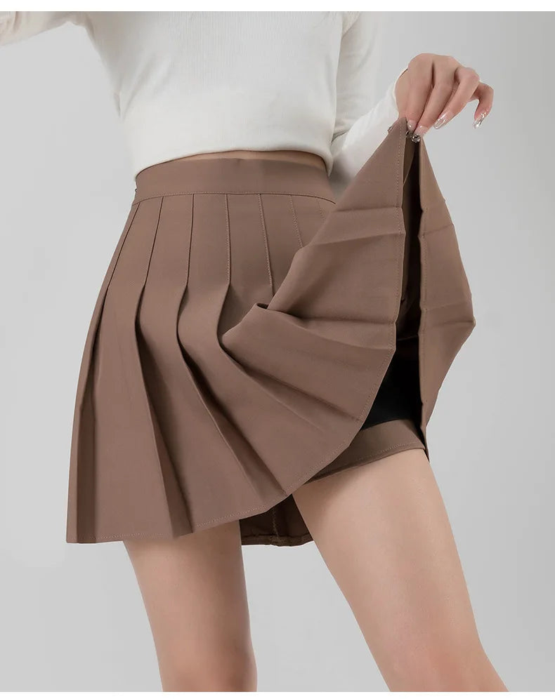 Step into summer 2024 with the exclusive Women's Skirt Korean Style Miniskirt A-line Short Rokken College Girls Falda Short De Mujer Black Pleated Skirt with Shorts. This season, embrace a fresh twist on classic Korean fashion that perfectly blends style and comfort, designed to keep you cool and chic during warm days and lively campus events. Its preppy, college-inspired look captures the latest trend for pleated skirts and A-line silhouettes, making it an essential addition for fashion-forward women.